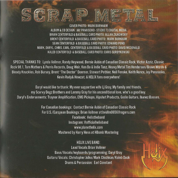 "Scrap Metal" содержит пять ранее не издававшихся треков, в которых сохранено "классическое" звучание Helix 1980-х годов. Остальные пять песен ранее были доступны на других релизах, таких как "Old School", "half-ALIVE" and "B-Sides". В первом сингле с нового альбома, "Stuck In The 80s", на гитаре играет Шон Келли (Гилби Кларк, Coney Hatch, Ли Аарон).