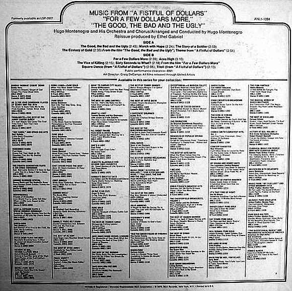 Hugo Montenegro - Music From A Fistful Of Dollars, For A Few Dollars More & The Good... (1976)