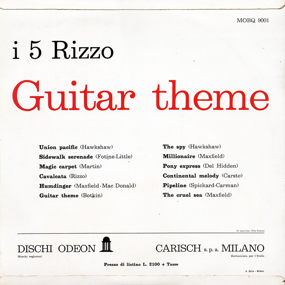 «Guitar Theme» — первый и единственный альбом итальянской группы I 5 Rizzo, выпущенный в Италии в 1964 году лейблом Odeon. В 1960 году по инициативе пианиста Николы Корбашио в начале 1960-х годов в Апулии, Италия, была создана группа I 5 Rizzo. В состав группы входили братья Гвидо Риццо (гитара) и Лучано Риццо (бас), давшие группе название, а также Никола Корбашио (фортепиано), Никола Паскале (тенор-саксофон) и Энцо Маффелла (ударные). Группа исполняла композиции в стиле известного жанра «The Shadows». Они быстро начали гастролировать по всей Италии, представляя версии популярных песен и классики рок-н-ролла. Они подписали контракт с лейблом Odeon, для которого в последующие годы записали несколько альбомов. В 1964 году они выпустили свой единственный LP, содержащий несколько инструментальных композиций в стиле той знаменитой британской группы. В последующие годы они перешли к бит-музыке. После распада группы в 1966 году два брата Риццо продолжили свою музыкальную деятельность в дуэте, переехав в Алассио. Энцо Мартелла, в свою очередь, переехал в Рим, чтобы работать звукоинженером в студии RCA Italiana. Группа записала только вышеупомянутый LP и 12 пластинок на 45 оборотов в минуту для лейбла Odeon. Группа существовала с 1960 по 1966 год.