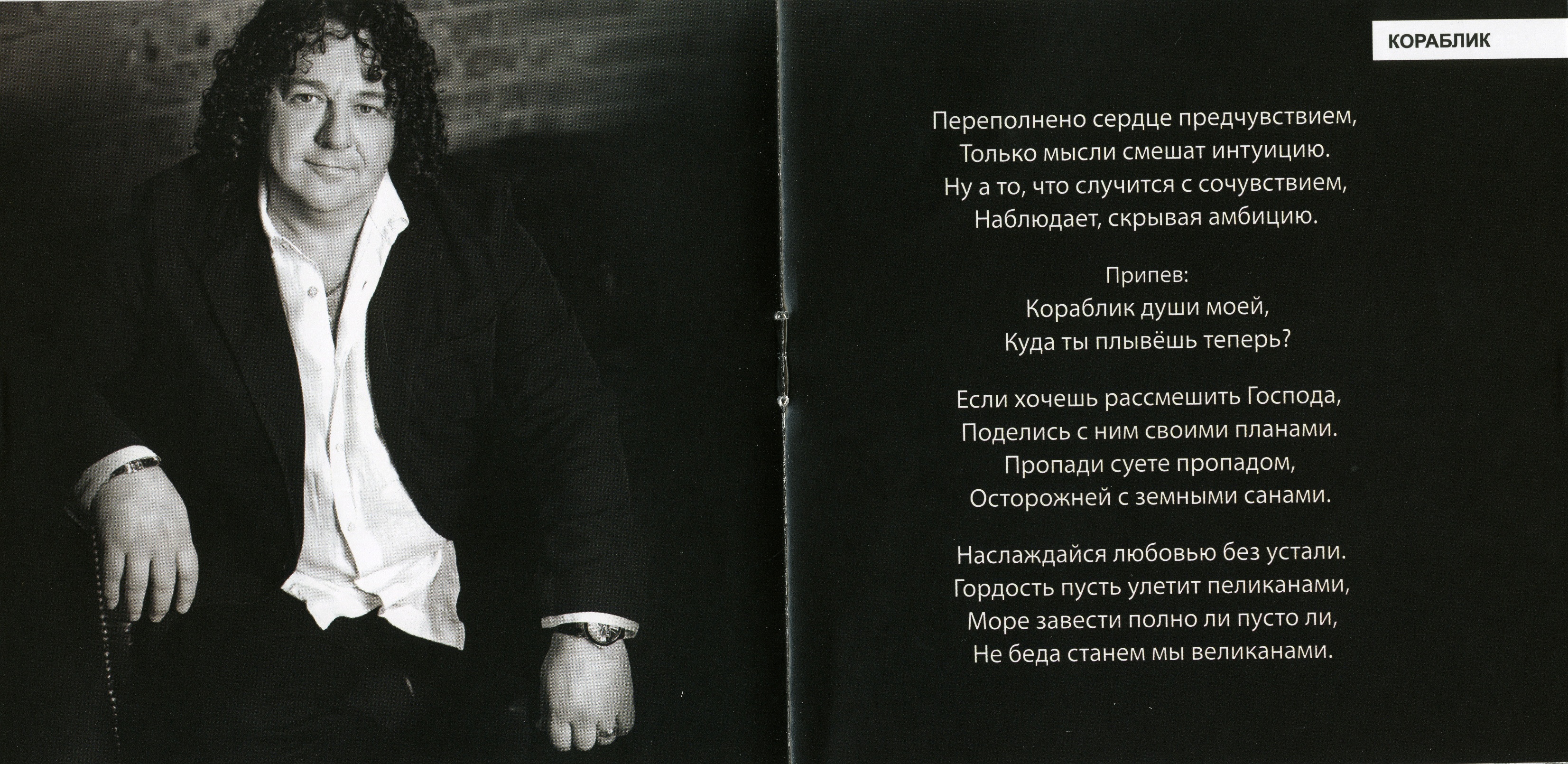 У Саруханова всё иначе. Он пишет новые песни, в которых нет никаких подобных фантазий. Все его песни – о том, что чувствует человек примерно его возраста, не утерявший способности любить и остро ощущать своё место в жизни. Саруханов не льстит себе, но и унынию не предаётся. Это всё тот же битломанский мягкий «взрослый» поп-рок с цепкими мелодиями, солидный и чуть с привкусом ретро. Примерно так же существуют Крис Ри или Эрик Клэптон.