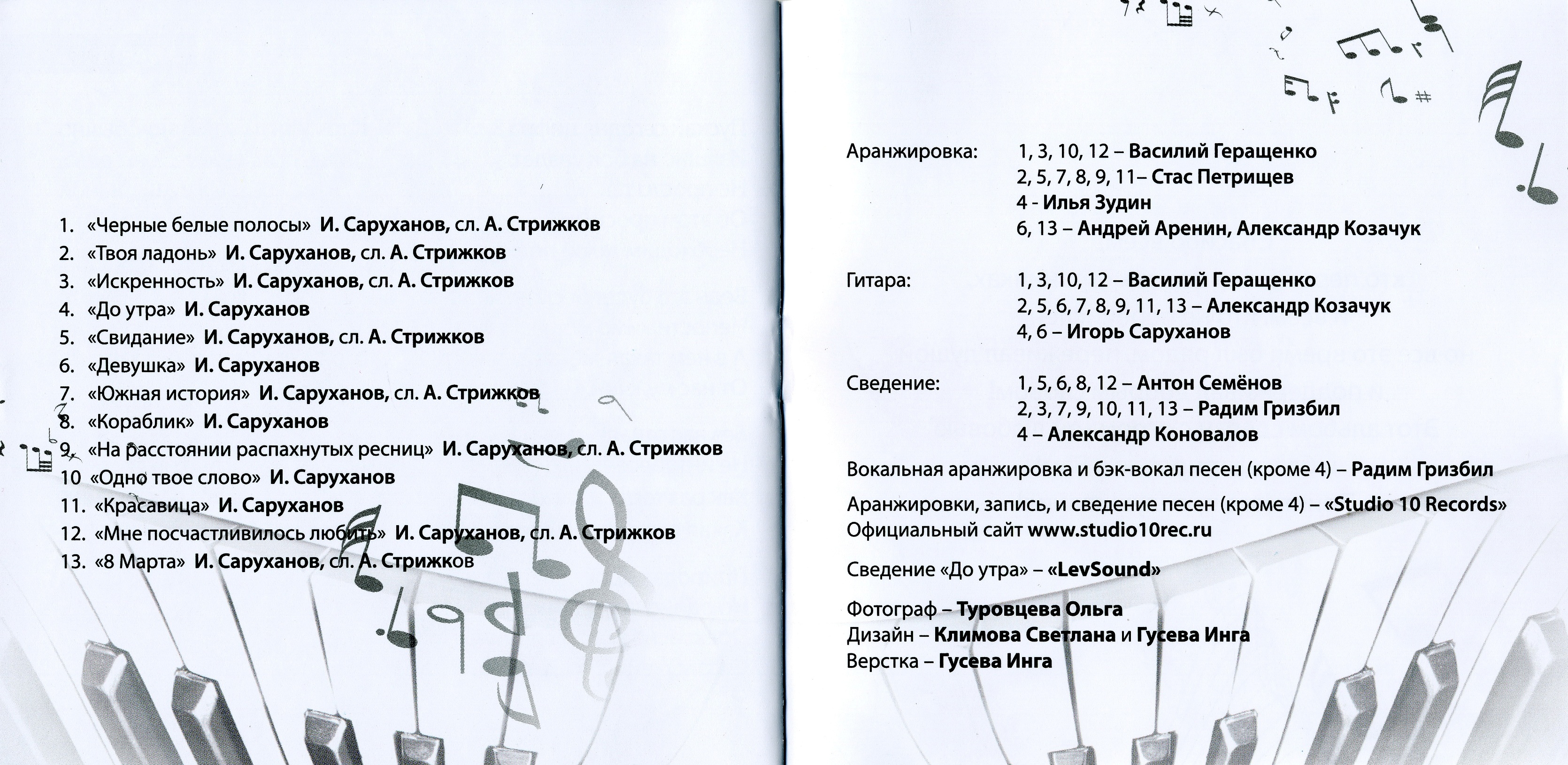 Аранжировки, запись, и сведение песен (кроме 4) – «Studio 10 Records»