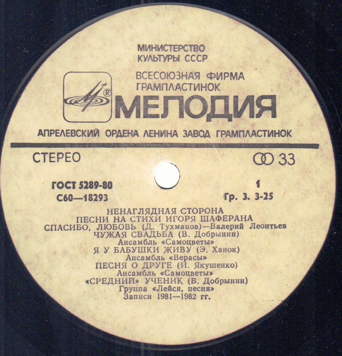 Всесоюзная студия грамзаписи. Записи 1981, 1982 гг.