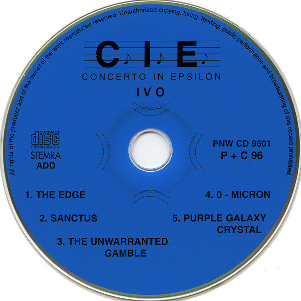 IVO это, собственно, проект музыканта из Нидерландов под именем Ivo Keers. Ivo начал заниматься электронной музыкой в конце 80х годов и некоторое время работал под псевдонимом Свен Хансен (Sven Hansen). Его первый проект Electric Universe имел всего 2 релиза на компакт кассетах, прежде чем музыкант взял свое реальное имя и выпустил в 1996 году, дебютный альбом «Concerto In Epsilon», который я сегодня и предлагаю вашему вниманию. По стилистике это можно охарактеризовать как Traditional Electronic и по своей сути это нечто среднее между Jean-Michel Jarre и Klaus Schulze. Диск состоит из четырех красивейших монументальных треков с легкой примесью этники, что в те годы вообще было не особо распространено в электронике. Первые два трека записаны в живую на разных концертах и два трека записаны в студии. Последний пятый трек является бонусом. Особенно хотелось бы отметить первые два творения на этом альбоме, уже ради которых можно смело ставить диск на полку. Это 18-минутный The Edge и 21-минутный шедевр Sanctus, который не смотря на свою не малую длительность и неторопливую гипнотическую монотонность, слушается практически на одном дыхании . Послушайте внимательно эти треки, проникнитесь плавной, но постоянно изменяющейся музыкальной картиной, которую рисует Ivo Keers. Быть может и не шибко совершенное по нынешним меркам качество записи живого выступления, ни коим образом не портит впечатления от этой музыки. Альбом рекомендую, всем любителям электронной музыки и Ambient Dub в частности, любители медитации несомненно тоже должны оценить эту работу. Лучшие треки на этом альбоме, несомненно, первые два, но они слишком велики, чтобы рекомендовать их как демонстрационные, а остальные треки не отражают сути всего альбома.