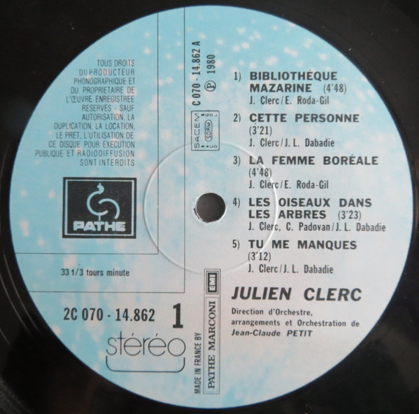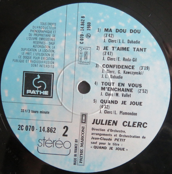 Альбом: Clerc Julien *Quand Je Joue* (1980)