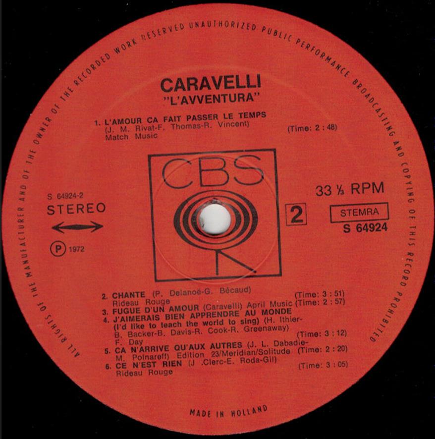 Caravelli – “L'avventura”, 1972, CBS – S 64924, Holland, мр3 192