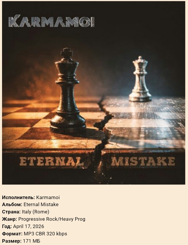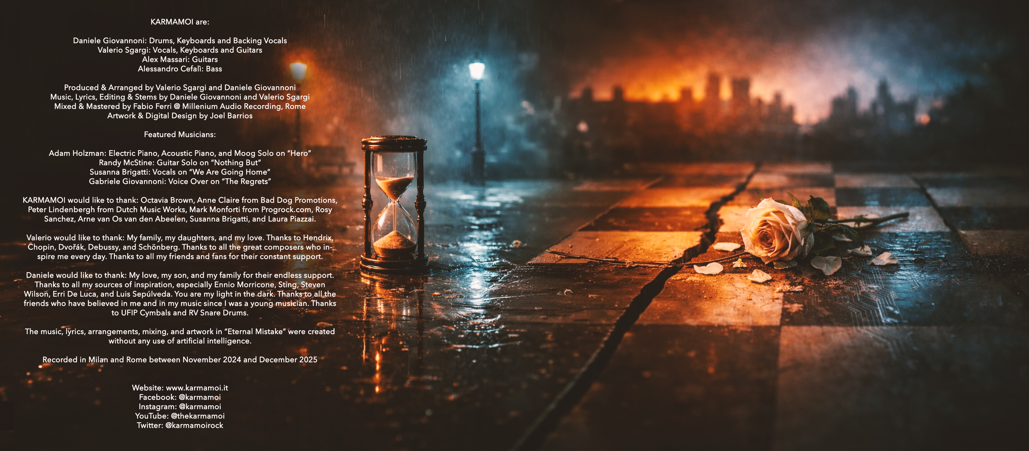 KARMAMOI - итальянская группа, образованная в 2008 году Даниэле Джиованнони (барабаны) и Сереной Кьяччи (вокал). В 2009 году они выпустили сингл и выступили с концертами в Италии. В 2010 году Karmamoi начали работу над своим самоназванным альбомом, а в январе 2011 года официально выступили на "Rising Love", одной из самых популярных площадок римской музыкальной сцены. В 2012 году вышел новый EP под названием "Entre Chien Et Loup". Затем группа записала новый концептуальный альбом ''Odd Trip'', вышедший в сентябре 2013 года, в который вошел сингл с тем же названием. Группа выпустила альбом, сыгранный вместе с Curved Air в "The Borderline" в Лондоне. "Odd Trip" стал большим шагом в прогрессивный рок. Чаччи покинул группу, чтобы работать над другими проектами.Состав Karmamoi пополнился Алессандро Чефали (бас), Фабио ТЕМПЕСТА (гитара) и Алексом МАССАРИ (гитара).
