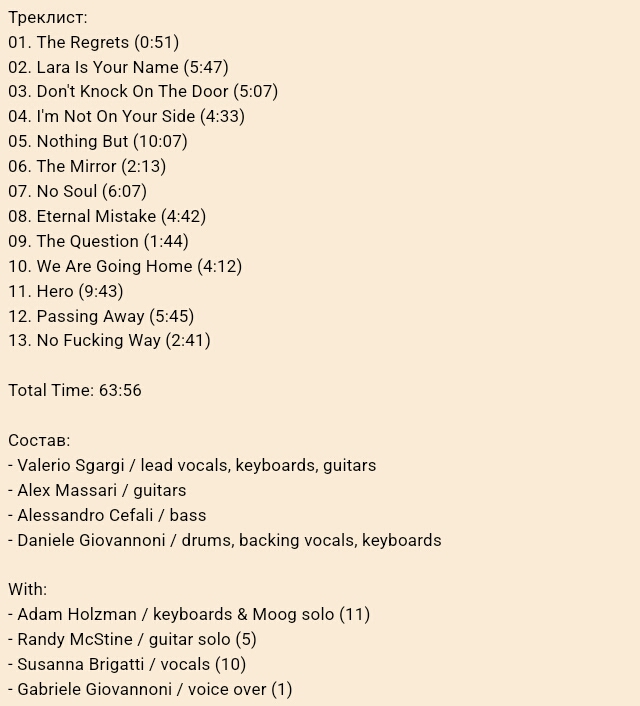 В 2018 году группа (теперь уже в составе дуэта Массари и Джованнони) работала над новым альбомом "The Day Is Gone", когда по телевизору показали ужас, произошедший в башне Гренфелл, и это оказало огромное влияние на участников. Прочитав душераздирающую историю о сирийских братьях Мохаммеде и Омаре (они бежали из Сирии, нашли безопасный дом в Лондоне, но Мохаммед погиб во время катастрофы в Grenfell Tower), группа решила отдать дань уважения концептуальным альбомом с участием приглашенных музыкантов - певицы Сары Ринальди, Колина Эдвина на басу (PORCUPINE TREE) и Джеффа Лейга на флейте (Steven WILSON). Музыка содержит со вкусом продуманные композиции, завораживающий баланс между мастерством и эмоциями, с элементами PINK FLOYD. Более мрачные атмосферы напоминают соло ROGER WATERS, а в гитарной игре есть намеки на GILMOUR и LATIMER, очень трогательно.
