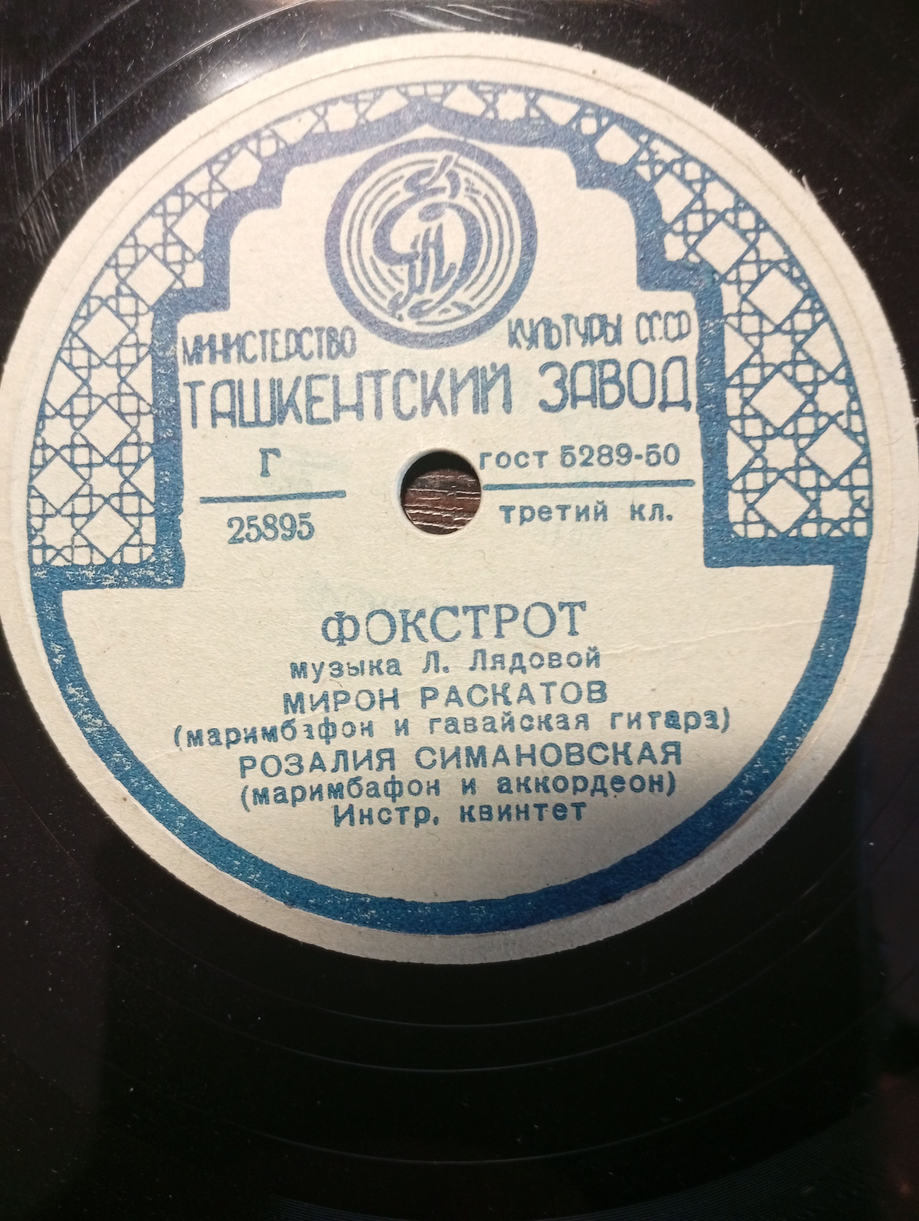 Г-25894 01.Карнавальный вальс (И.Ильин) Эстрадный оркестр Всесоюзного Радио. Дирижёр В.Н.Кнушевицкий Г-25895 02.Фокстрот (Л.Лядова) Мирон Раскатов (маримбафон и гавайская гитара), Розалия Симановская (маримбафон и аккордеон) инструментальный квинтет
