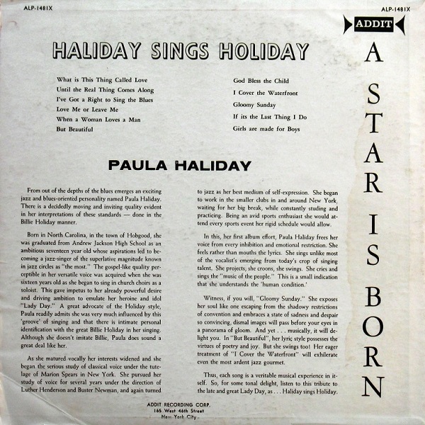 На первом и единственном сольном альбоме, записанном в 1965 году, Паула Хэлидей освободила свой голос от всех ограничений и эмоциональных барьеров. В сопровождении превосходного квинтета музыкантов она поёт и блистает в стиле свинг. На альбоме есть и несколько примечательных инструментальных сольных партий, особенно в исполнении пианиста Дона Эбни (1923-2000), которые делают пластинку «Holiday Sings Holiday» настоящим музыкальным событием, а также данью уважения великой «Леди Дэй». Альбом переиздан в 2020 году в Испании в составе сборника вместе с альбомом ещё одной джазовой певицы 60-х из Детройта (штат Мичиган) Донны Дрейк.