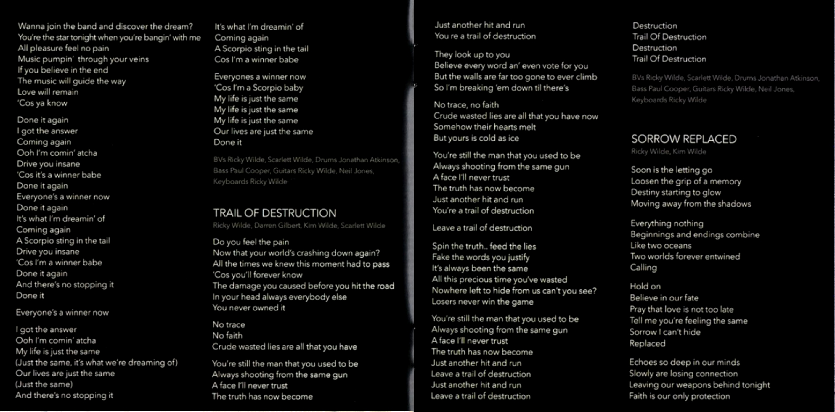 Backing Vocals – Ricky Wilde, Scarlett Wilde