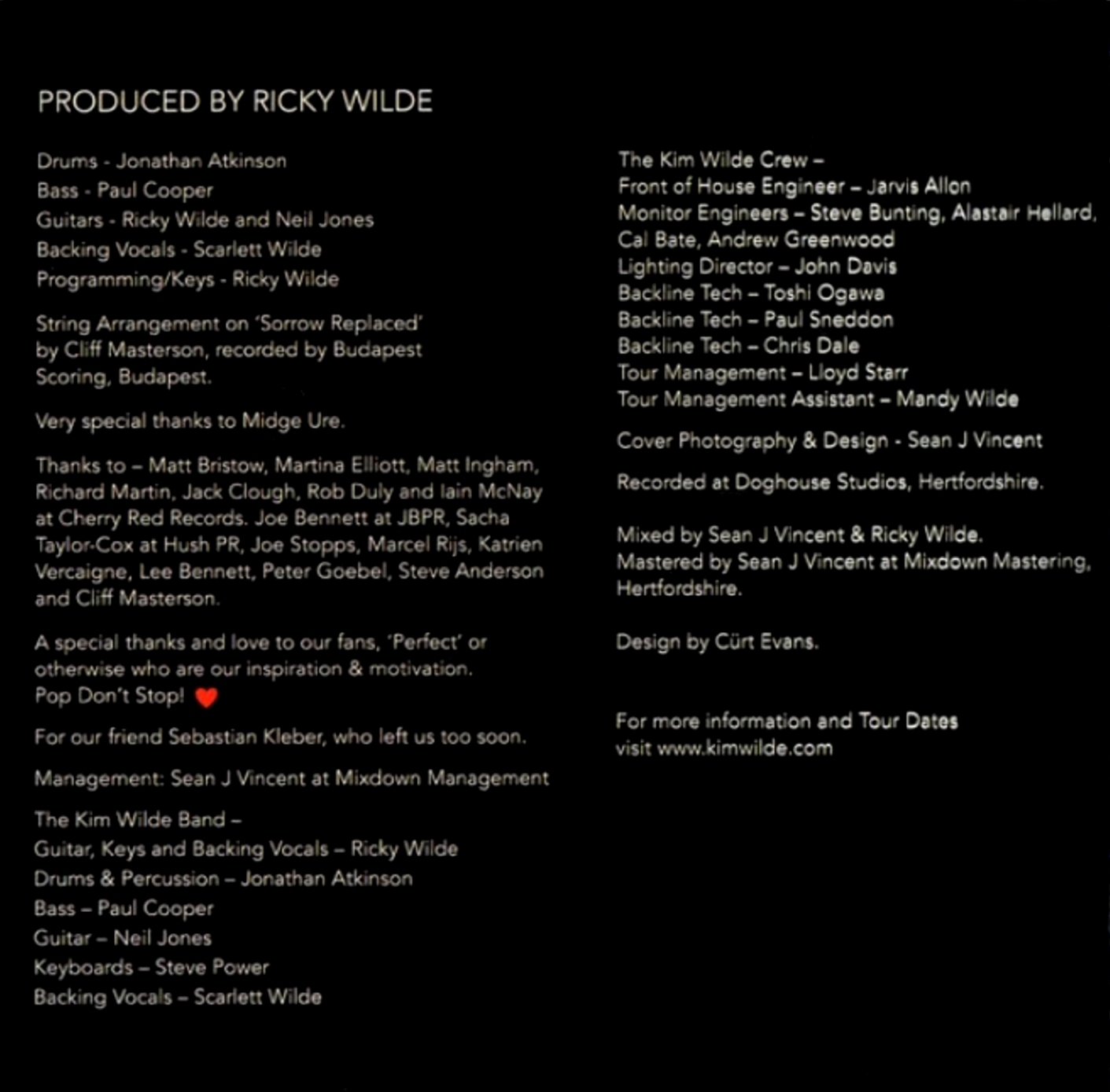 Crew [The Kim Wilde Crew], Engineer [Monitor Engineer] – Alastair Hellard, Andrew Greenwood (6), Cal Bate, Steve Bunting