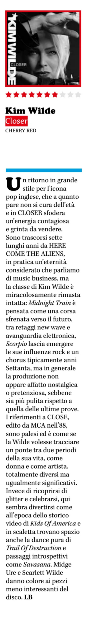 Ким Уайлд, которая прославилась такими вечными хитами, как «Kids in America», «You Keep Me Hangin' On» и «Cambodia», продолжает развивать своё звучание, сохраняя энергию и остроту, которые определили её карьеру в 1980-х годах. «Closer» является свидетельством её непреходящей привлекательности и музыкального новаторства.