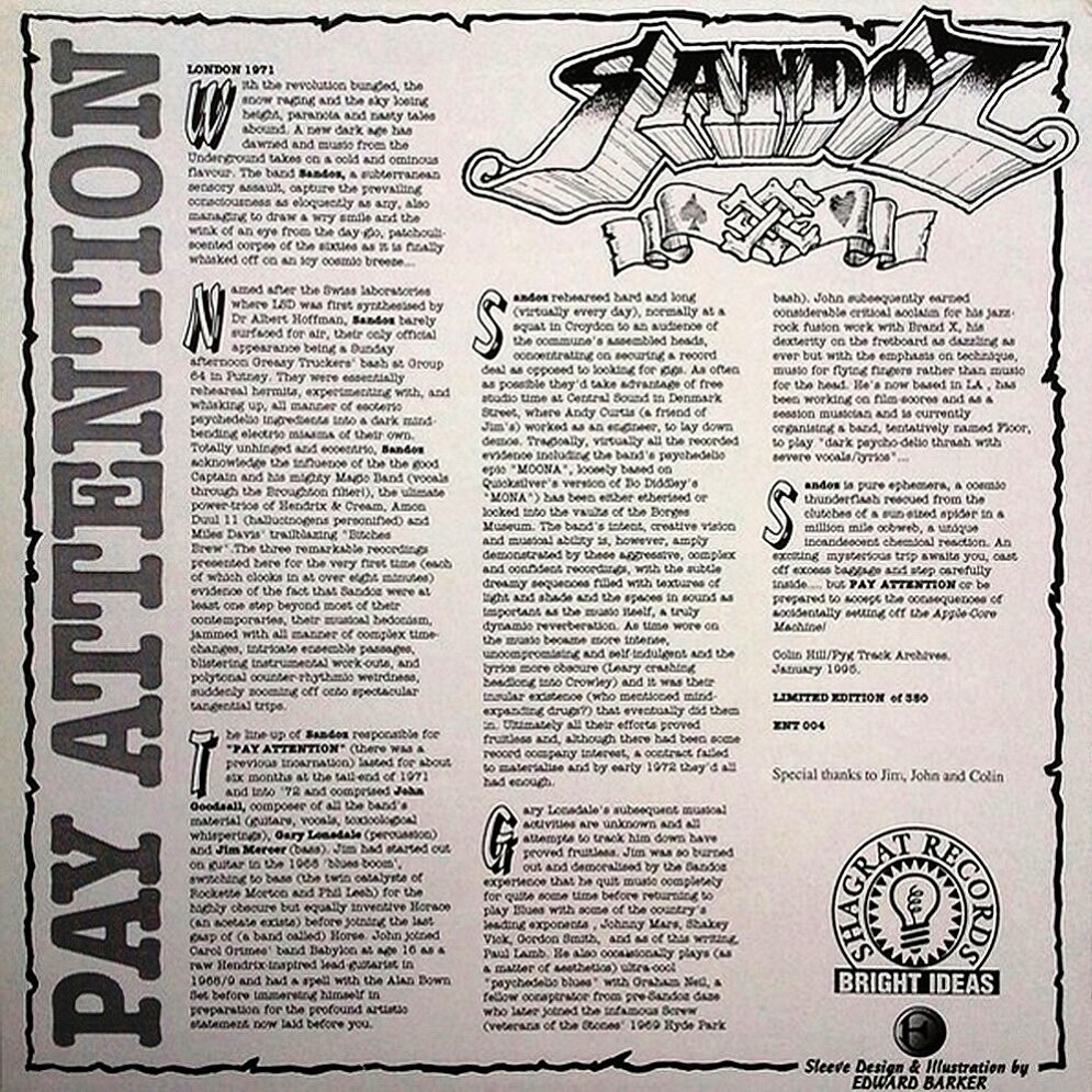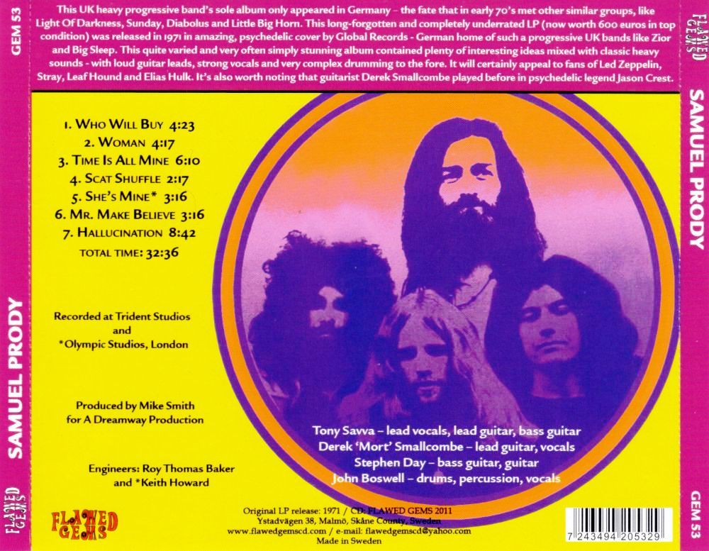 Об этой лондонской группе известно не так уж много. На их единственном альбоме нетипичный блюз/психоделический рок, но, что интересно, весьма необычный и с ним музыканты не вписываются ни в один конкретный музыкальный жанр. На пластинке есть несколько действительно хороших инструментальных треков, перемежающихся с парой странных интерпретаций вокала. Но пусть это вас не смущает - ранние Jethro Tull тоже имели блюзовый оттенок саунда, а данный альбом очень похож на то, что играли более именитые британцы.