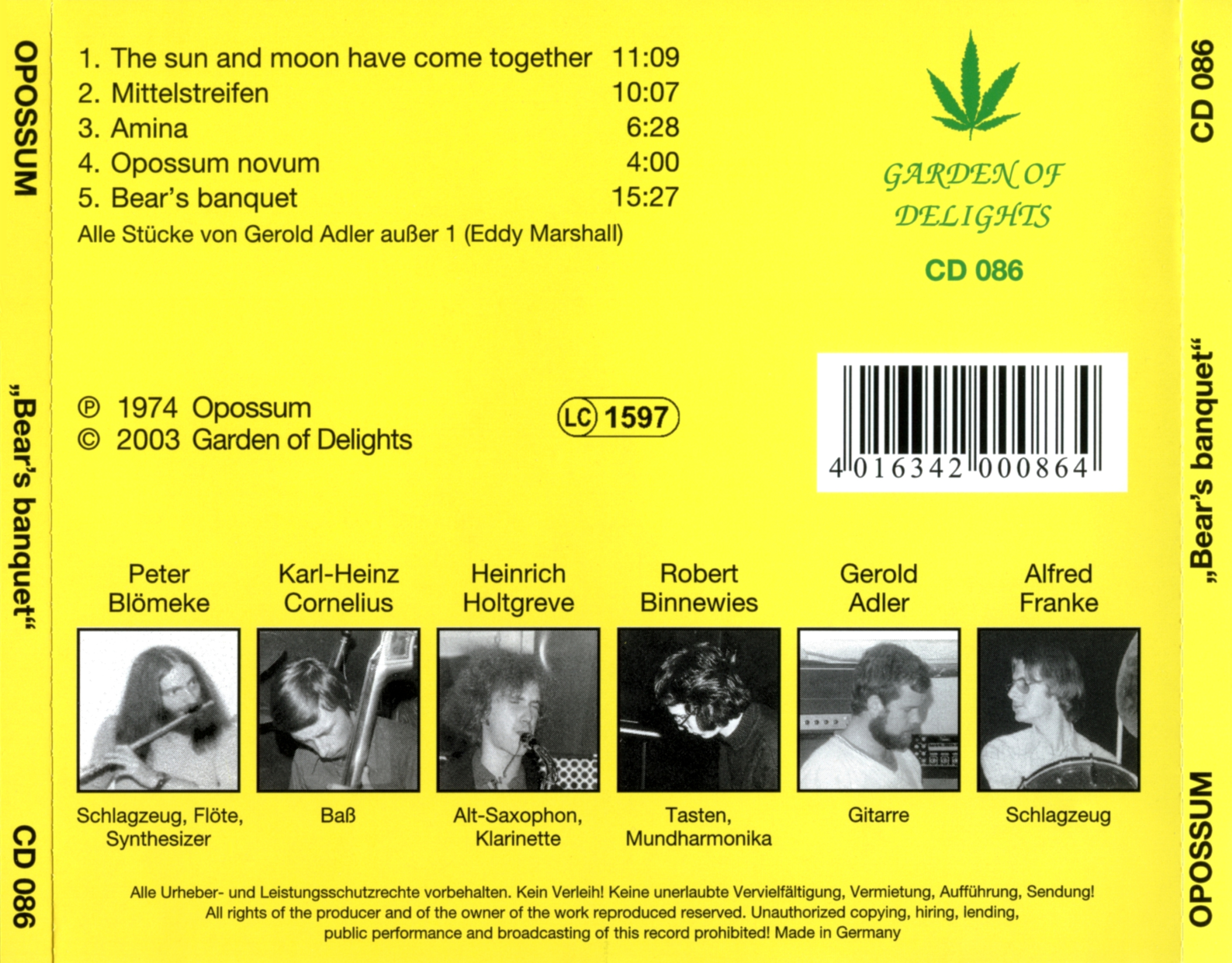 2985 • OPOSSUM (Germany) — Bear's Banquet [recorded 1974] (2003) • Rock / Krautrock, Jam Band, Jazz-Rock, Fusion