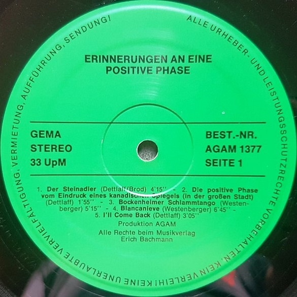 Единственный альбом этого малоизвестного немецкого (из Гамбурга) поэта-песенника, композитора, мультиинструменталиста, будущего участника столь же неведомой синти-поп группы For-U, а также и продюсера, вышедший на виниле на частном, штучном лейбле «Mayascheiben» и, само собой, доселе ещё ни разу и ни в каком виде не переизданный, практически невозможно найти и поныне…