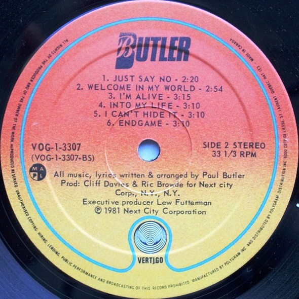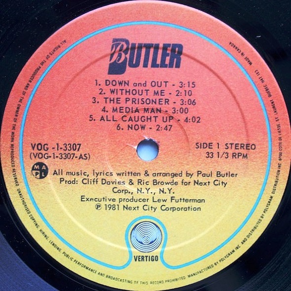 2995 • BUTLER (Canada) — Butler (1981) • Rock / Hard Rock, AOR, Pop Rock, Power Pop