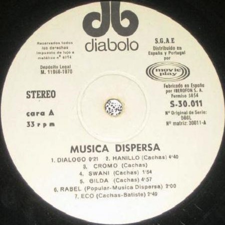 Настоящей аномалией и редкостью каталонской сцены была эксцентричная и недолго просуществовавшая группа MÚSICA DISPERSA, выпустившая лишь одноимённый альбом, прежде чем распасться на различные другие проекты. Считающаяся одной из самых уникальных и экспериментальных хиппи-групп Испании 70-х годов, MÚSICA DISPERSA на своём единственном релизе представила причудливую смесь местных традиционных и импортных фолк-мелодий с избытком авангарда и психоделики, исполненных харизматичным лидером группы Брабо «Эль Качасом», которому аккомпанировали Альберт Батист, Сиса, Селена и Хосеп М. Виласека.