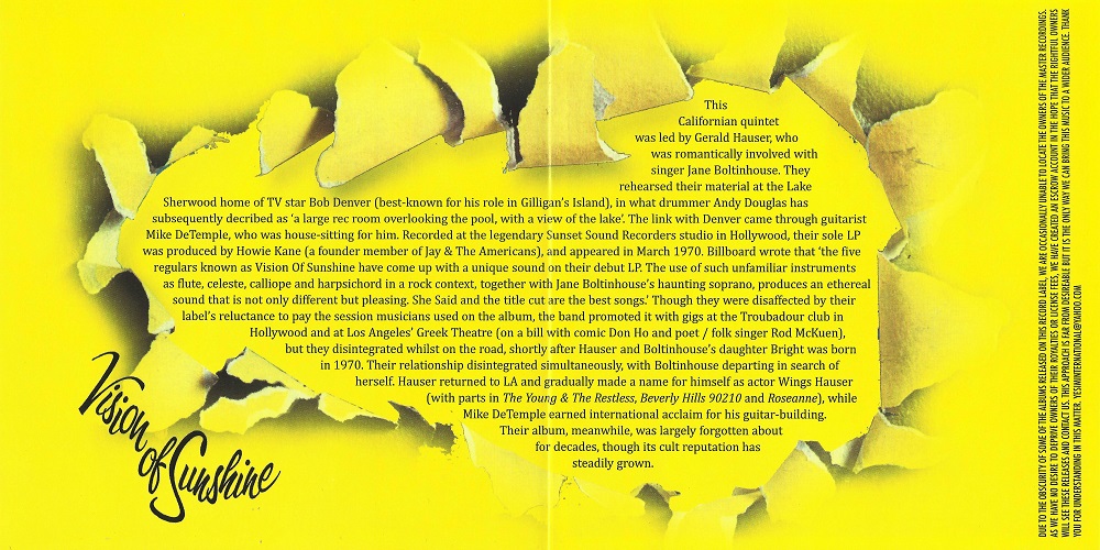 Единственный, редкий альбом этой американской группы, спонтанно собранной в большинстве своём из сессионных музыкантов, изданный в оригинале самостоятельно, лишь в прошлом году появился на специализированных Интернет-площадках "Spotify", "AOR-Music" и "Country Rock Music", и теперь, чтобы послушать данную великолепную пластинку, не нужно тратить 200 долларов и даже больше.