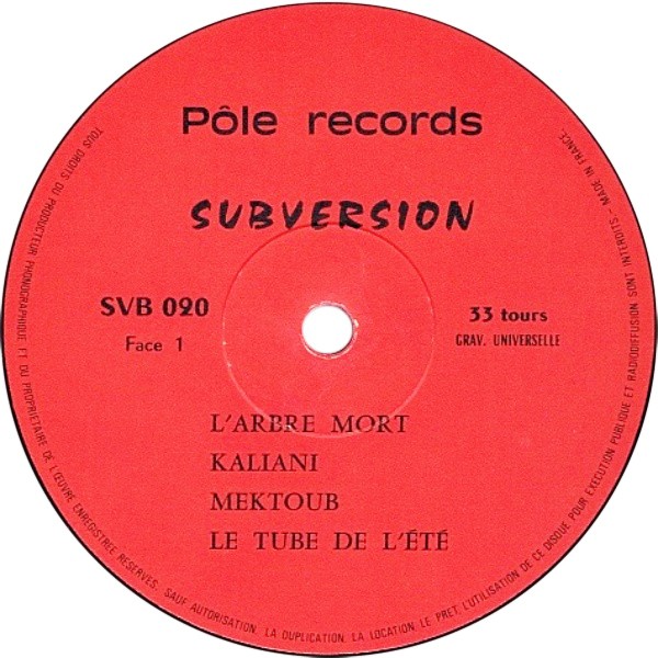 Малоизвестная французская группа Subversion (из Парижа) играла негромкий джем-прогрессивный рок с ярко выраженными фолковыми и джазовыми нотками. Однако, несмотря на кажущуюся броскую внешность, их мягкая музыка больше напоминала наивность йе-йе 60-х и лаунж-поп в целом. Поэтому они словно принадлежали к ушедшей эпохе, далекой от наступившего засилья панк-рока и новой волны.