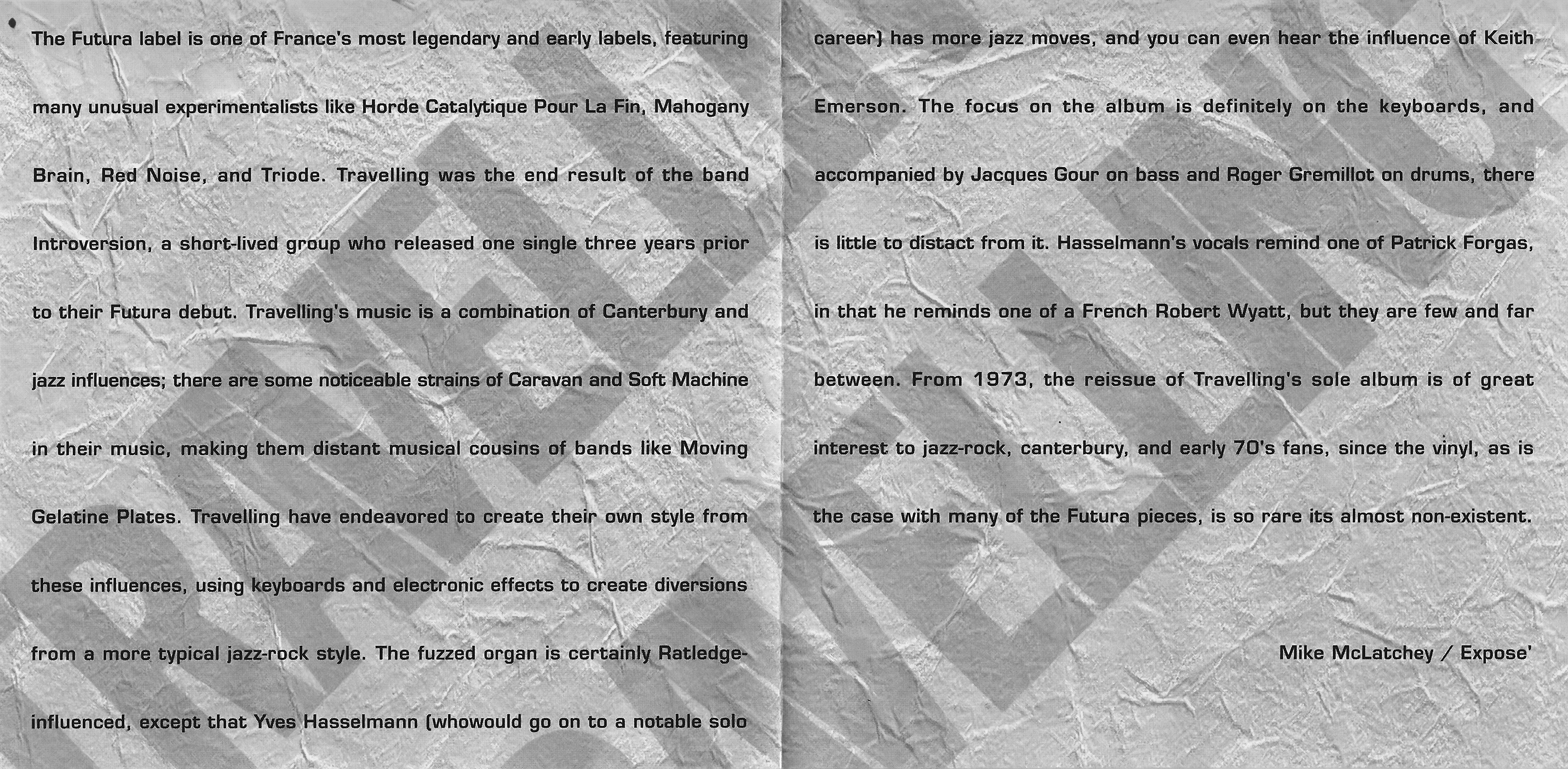 Жемчужина с небольшого острова Гваделупе, что в тихоокеанском Карибском бассейне, принадлежащего Мексике и породившего данный уникальный и редкий альбом, выпущенный независимо, т.е. без участия какого-либо лейбла, и, вероятно, записанный во Франции (хотя эта информация не точна). О музыкантах, сотворивших это чудо, особо ничего не известно…