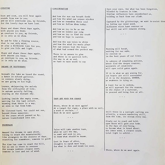 Да, это – греческие ВЫ, РЕБЯТА, и какие ребята!!! Здесь мы имеем дело ни больше, ни меньше, как с настоящей супер-группой или, иносказательно и образно говоря, со смешанной с музыкальной точки зрения Грецией того времени, лучшие творческие представители которой собрались в 1983 году в столице страны, Афинах, чтобы записать этот один-единственный лонгплей, вышедший на престижном интернациональном лейбле «Mercury».