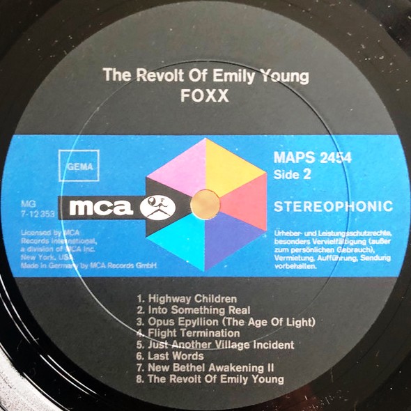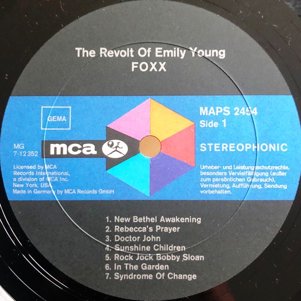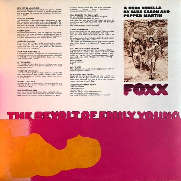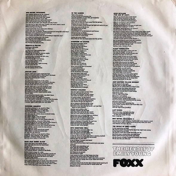 Американская группа Foxx - одноразовый студийный проект, сформированный продюсером Баззом Кэсоном специально для записи концептуального альбома «The Revolt Of Emily Young». Все песни на пластинке написаны Кэсоном в соавторстве с певцом и гитаристом группы Пеппером Мартином. LP имеет подзаголовок «рок-новелла» и может быть причислен к разряду виниловых произведений с жёсткой концепцией, поскольку содержит экспозицию (сюжетную линию), которая последовательно развивается от первой композиции к последней. Альбом повествует о вступлении в зрелую жизнь девушки по имени Эмили Янг, и его, пожалуй, можно отнести к разряду мини рок-опер. Вполне вероятно, что это единственный нэшвильский проект того времени, который звучал так, словно записан в Англии британскими музыкантами.