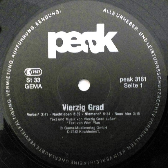 2958 • VIERZIG GRAD (Germany) — Vierzig Grad (1981) • Rock / Classic Rock, Deutschrock, Pop Rock, Krautrock
