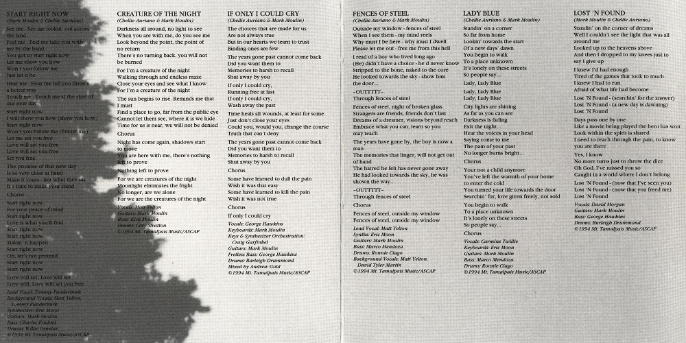 Единственный альбом шведской мелодик-хард-рок группы. Две гитары, клавишные, ударные и бас - это довольно много, если учесть, что все они тоже вокалисты. Дисторшн и запилы гитары вполне металлические и грубые, но вокал мягкий, а линии мелодии лиричны. Всё это так, но вот аранжировки и работа ансамбля в целом фатально детские. Такое можно увидеть на какой-нибудь демоверсии, но здесь всё далеко от хоть какого-то продакшена. Несмотря на то, что присутствуют две ведущие гитары, соло весьма неуверенное, плюс оно немедленно останавливается, и структура мелодии обрезается. Но тут уж ничего не поделаешь... Это болезненный случай - дослушать альбом до конца и, скорее, сей продукт не для распространения на широком уровне. Можно попасть в ловушку по ключевым словам «скандинавский» и «мелодик рок», и получить безумную потерю.