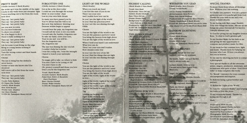 • Tobias Verch: lyrics [text] & music, vocals/voice; classical, acoustic, twelve-string/six-string, electric [solo] guitars; others strings, piano, vibraphone.