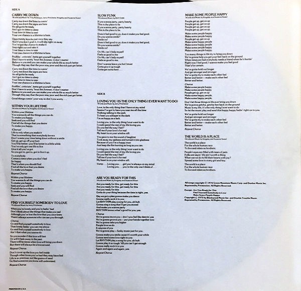 Первая сторона действительно очень слабая и расплывчато мягкая, с одним-двумя хорошими, гитарными соло. Оборотная немного лучше, с парой приличных вступительных частей треков в инструментальной манере, но вскоре альбом идёт вниз с ростом коммерческих фанк-сокращений, явно стремясь к вершинам хит-парадов тех дней. В общем, не более чем обычный фанк-поп альбом, не так уж далеко от творений таких групп, как калифорнийцы Pablo Cruise, но в основном на любителя…