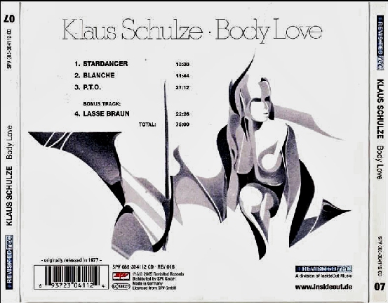 Первый саундтрек Клауса Шульце написан для... эротического фильма! Хотите верьте, хотите нет, но его предыдущие альбомы «Timewind» и «Moondawn» уже использовались немецким кинорежиссером Лассе Брауном в качестве фоновой музыки для его сцен. Логично, что он напрямую обратился к электронному музыканту с просьбой написать музыку для его следующего фильма «Любовь к телу». Но не волнуйтесь, здесь нет ничего усыпляющего, монотонного или ленивого. Шульце по-прежнему предлагает отправиться в музыкальное путешествие по своим гипнотическим и медленно развивающимся звуковым ландшафтам. Тогда... можно ли сказать, что это продолжение "Moondawn" или даже "Timewind"? Если точнее, то "Body Love" можно рассматривать скорее как футуристическую эволюцию, в основном благодаря перкуссионным элементам, которые привносит будущий барабанщик ASHRA Харальд Гроскопф, а также динамичности треков и их научно-фантастическому звучанию.