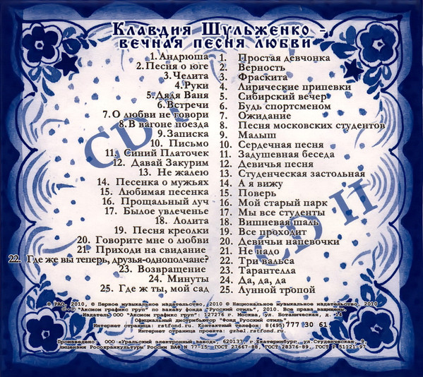Клавдия Шульженко - Вечная песня любви (CD 2)
