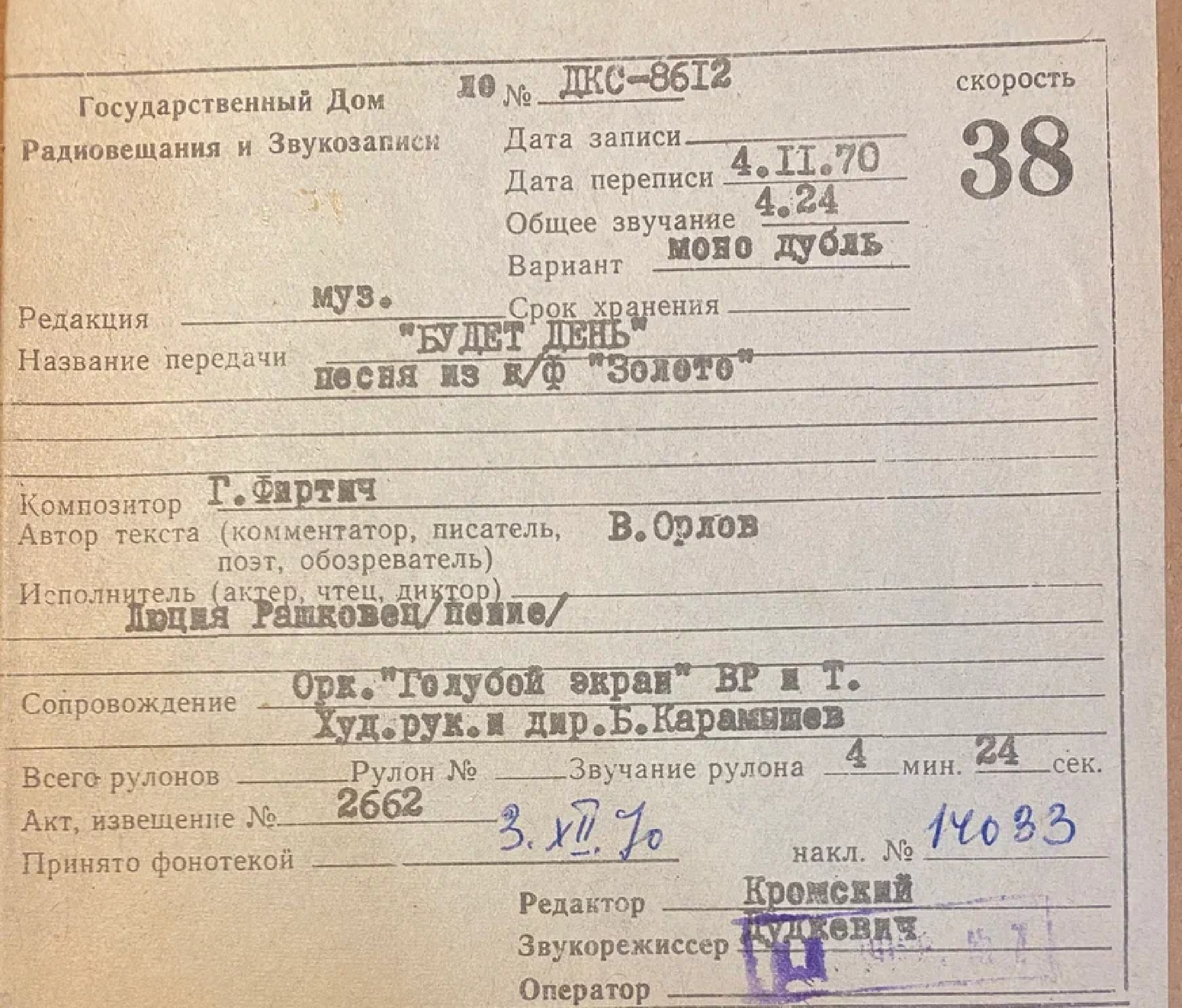 Здравствуйте! В фильме "Золото" 1969 года выпуска звучит песня. Песня очень хорошая. Непонятно, кто поёт в фильме. В сети исполнение песни приписывается некой Надежде Давыдовой, но никаких сведений о такой певице в сети почему-то нет... Можно было бы подумать. что в фильме могла петь исполнительница главной роли Наталья Варлей, но ей на момент съёмок фильма было 22 года... Вряд ли ей доверили исполнить эту серьёзную, проникновенную песню...