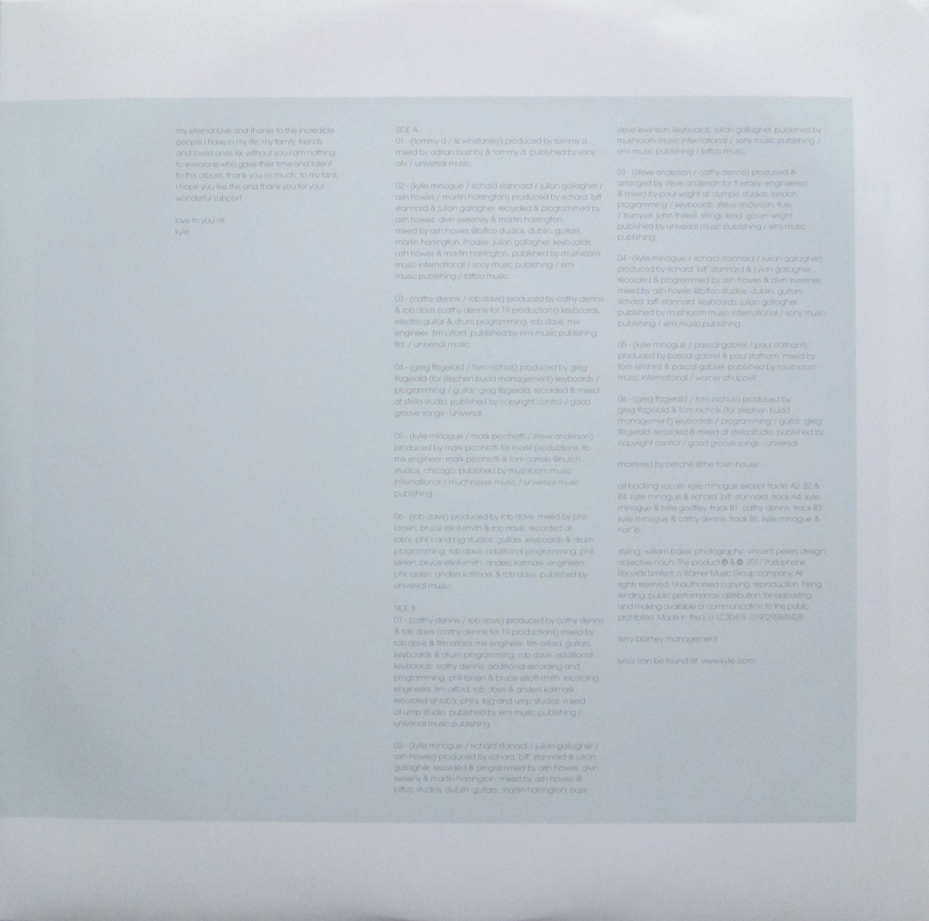 all backing vocals: kylie minogue except tracks A2, B2 & B4: kylie minogue & richard 'biff' stannard, track A4: kylie minogue & billie godfrey, track B1: cathy dennis, track B3: kylie minogue & cathy dennis, track B6: kylie minogue & nat' b.