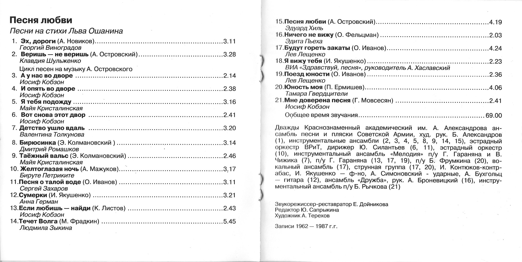 Лев Ошанин ~ (1995) VA - Песня любви: Песни на стихи Льва Ошанина