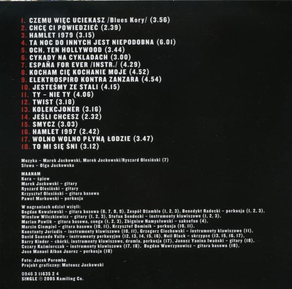 В течение следующих нескольких лет группа много гастролировала, а в 1994 году они напомнили о себе еще одним лонгплеем. Продюсером альбома «Rose» снова стал Нил Блэк. В него вошли песни «Wieje pióriem od strony wojny» и «Nic dwa razy» на слова Виславы Шимборской. Спустя 12 месяцев альбом уже стал платиновым. Спустя два года вышел следующий альбом группы под названием «Łóżko», который стал золотым еще до премьеры. В августе 1997 года Маанам записала две быстрые песни «Smycz» и «Hamlet 1997» для сборника «Rockendrolle». Через несколько месяцев на рынке появился следующий альбом — «Klucz», содержащий совершенно новый материал. «Hotel Nirwana», премьера которого состоялась в марте 2001 года, стал одиннадцатым альбомом в истории группы. В апреле 2004 года вышел лонгплей «Знаки знаки». Записи материала предшествовала очередная смена состава группы. Марек Яковски, помимо Коры, конечно, пригласил поработать с ним Чарека Казмерчака (клавишные), Януша Янину Иваньского (гитары), Бодека Вавжиновича (бас) и Хосе Мануэля Альбана Хуареса (ударные). Первым синглом альбома стала песня «(Ocean wolny czas) Kraków». Год спустя, в июне 2005 года, группа представила бокс-сет «Simple Story», содержащий 15 компакт-дисков и подытоживающий достижения группы Maanam на сегодняшний день. В комплект входят все польские студийные альбомы, два DVD и специальное приложение в виде двух дополнительных дисков. «Синглы» содержат радиоверсии известных хитов группы, которые не были выпущены на коммерческих пластинках. Второй бонусный диск — «Unikaty», включающий ранее не издававшиеся песни, демо-версии песен и записи из фильма «Wielka majówka». Все это дополняется богато иллюстрированным буклетом, содержащим полные редакции альбома, фотографии, в основном неизвестные поклонникам, и тексты всех песен группы.