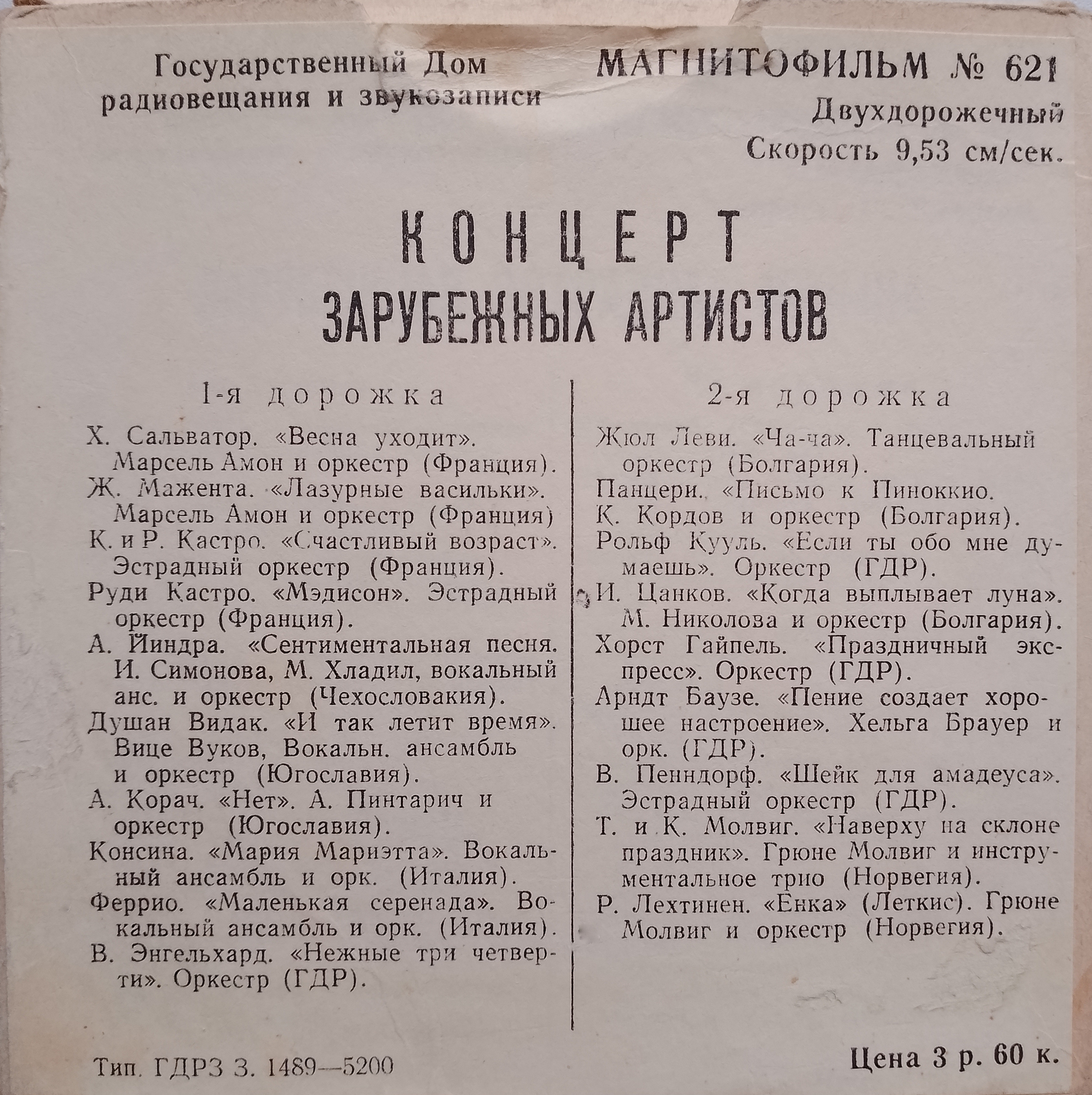 Магнитофильм №621 - Концерт зарубежных артистов ( Первая Нумерация )