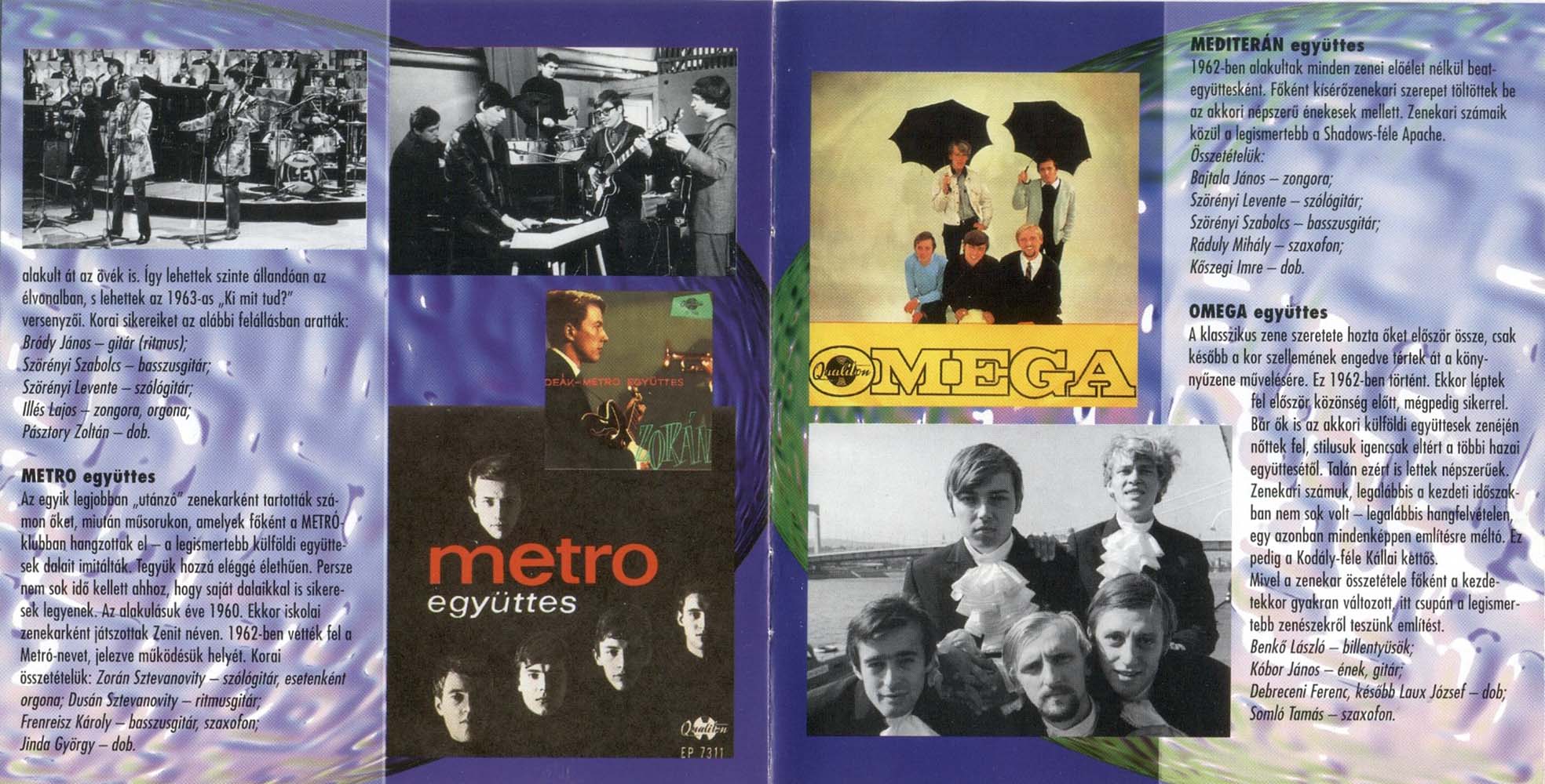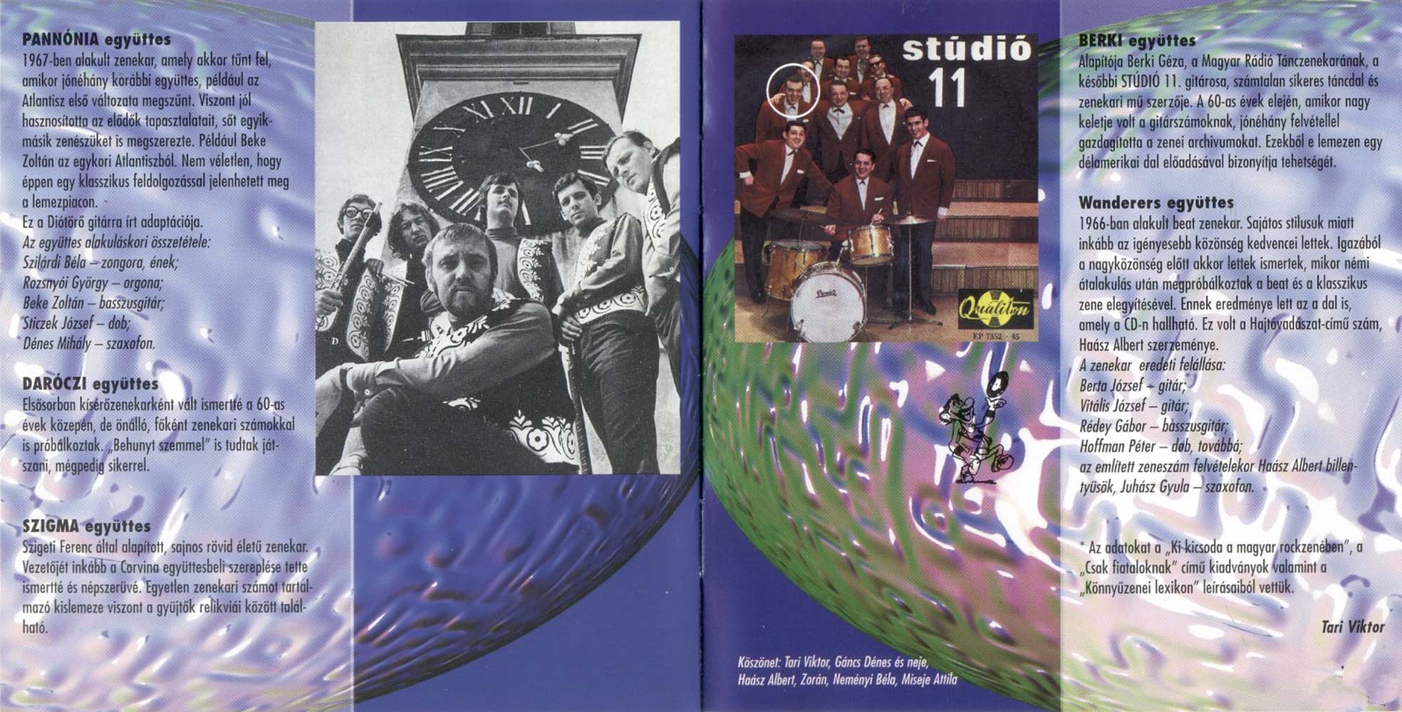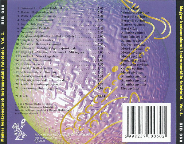 «Magyar Beatzenekarok Instrumentális Felvételei Vol.1.(Hungarian Beat Instrumental 60's Years)», V/A — так называется превосходный сборник, выпущенный лейблом Rock In Box Records, который объединяет инструментальную музыку различных венгерских бит-групп 60-х и 70-х годов, отражая малоизвестную инструментальную сторону той бит-эры в Венгрии. Одной из важных площадок той эпохи была Университетская сцена (Egyetemi Színpad), которая давала поп/рок-группам возможность выступать и продвигать свою музыку. Сборник раскрывает скрытые сокровища того времени; самые известные группы (Omega, Illés, Metro и другие), прославившиеся своими песнями с вокалом, демонстрируют техническое мастерство музыкантов и музыкальное разнообразие того времени. 21 инструментальная композиция демонстрирует творчество десятка групп той эпохи, некоторые из них представляют собой оригинальные композиции, другие — аранжировки, а третьи — версии известных песен зарубежных исполнителей.