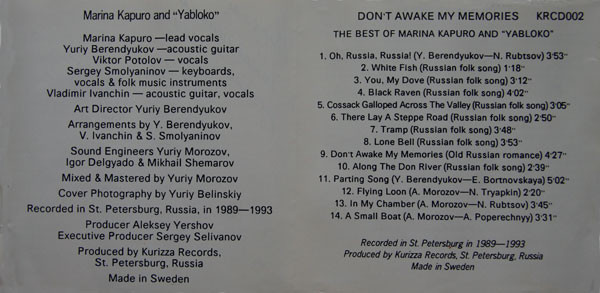 Marina Kapuro & Yabloko – Don't Awake My Memories (1993)