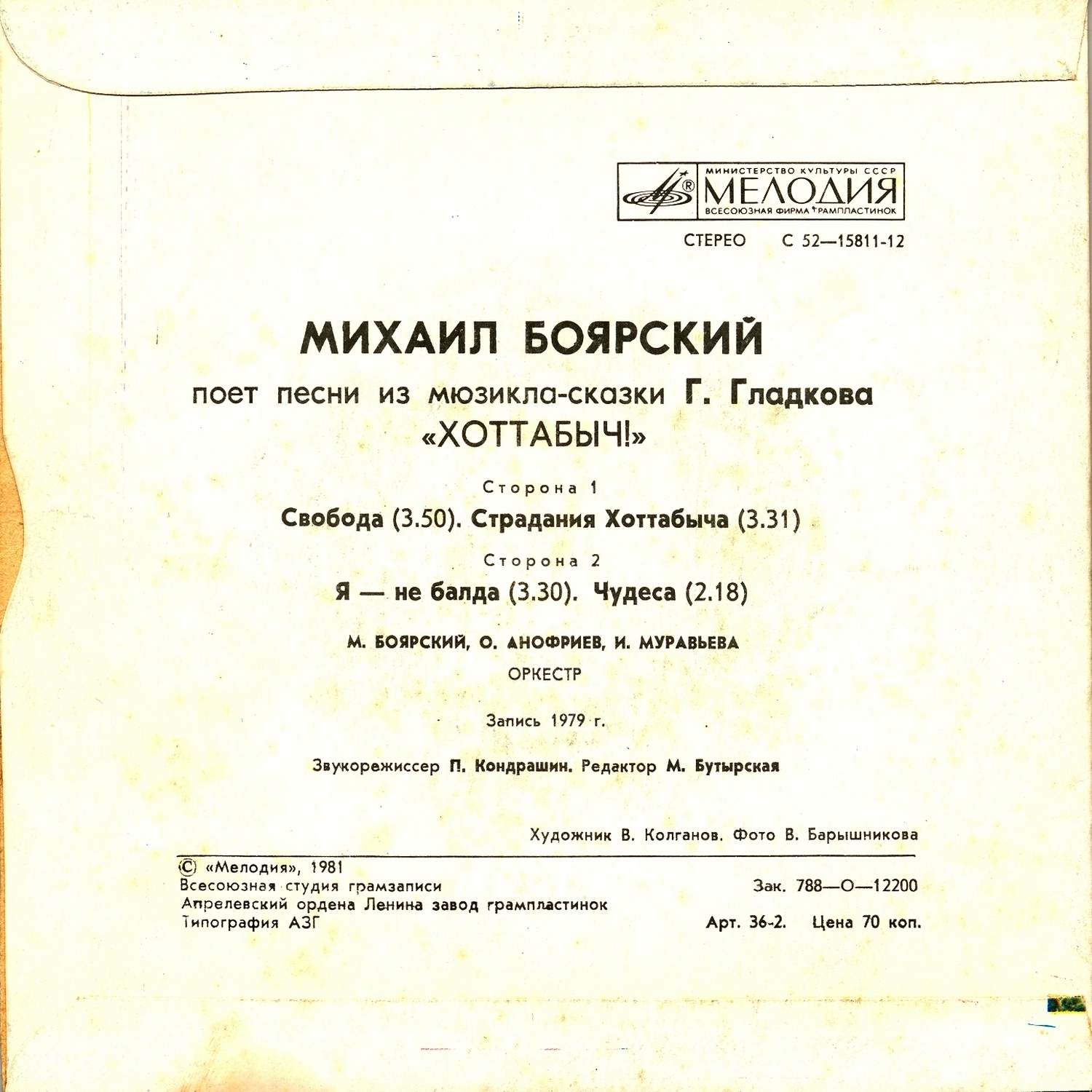 Михаил Боярский ~ (1981/1979) Михаил Боярский поёт песни из мюзикла Г.Гладкова «ХОТТАБЫЧ!»