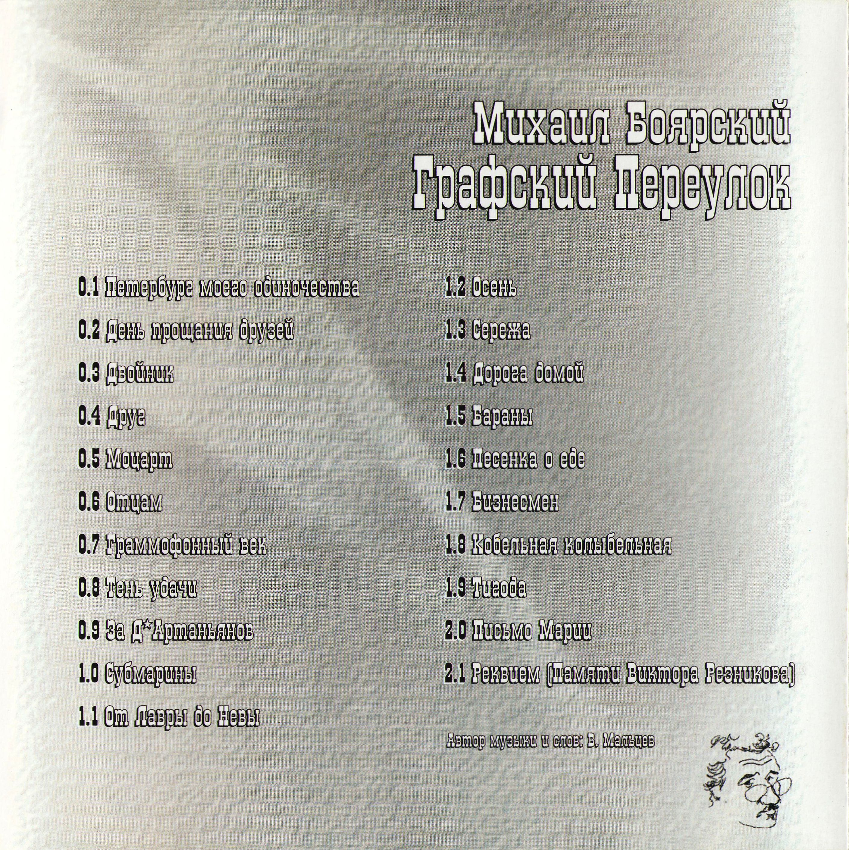 Альбом Михаила Боярского "Графский Переулок" станет настоящим праздником для всех любителей творчества актёра и не только. Ведь всё, за что берётся Михаил Боярский, обречено на успех."