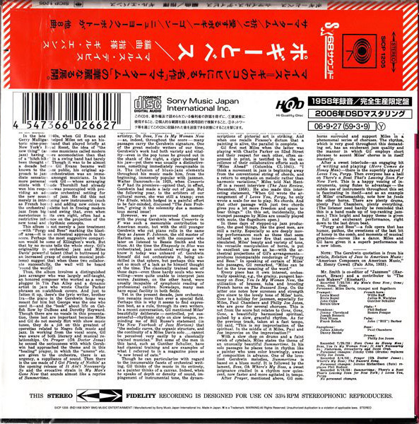 Alto Saxophone – Julian Cannonball Adderley Arranged By, Conductor – Gil Evans Bass – Paul Chambers (3) Bass Clarinet – Danny Bank Bass Trombone – Dick Nixon Composed By – George Gershwin Drums – Philly Joe Jones (треков: 1, 3 to 7, 9, 12, 13), Jimmy Cobb (треков: 2, 8, 10, 11) Flute – Phil Bodner (треков: 2 to 4, 8 to 11), Romeo Penque Flute, Tenor Saxophone – Jerome Richardson (треков: 1, 5 to 7, 12, 13) French Horn – Gunther Schuller, Julius Watkins, Willie Ruff Trombone – Frank Rehak, Jimmy Cleveland, Joe Bennett Trumpet – Bernie Glow, Ernie Royal, Johnny Coles, Louis Mucci Trumpet, Flugelhorn – Miles Davis Tuba – Bill Barber