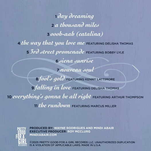 И вот теперь Mindi Abair, с участием Маркуса Миллера, Кенни Латтимора, Бобби Лайла, Делиши Томас и Артура Томпсона, выпустила «Based On A True Story» — современный поп-альбом, в основе которого лежит жизненный путь Минди. Это будет её 14-й сольный альбом.