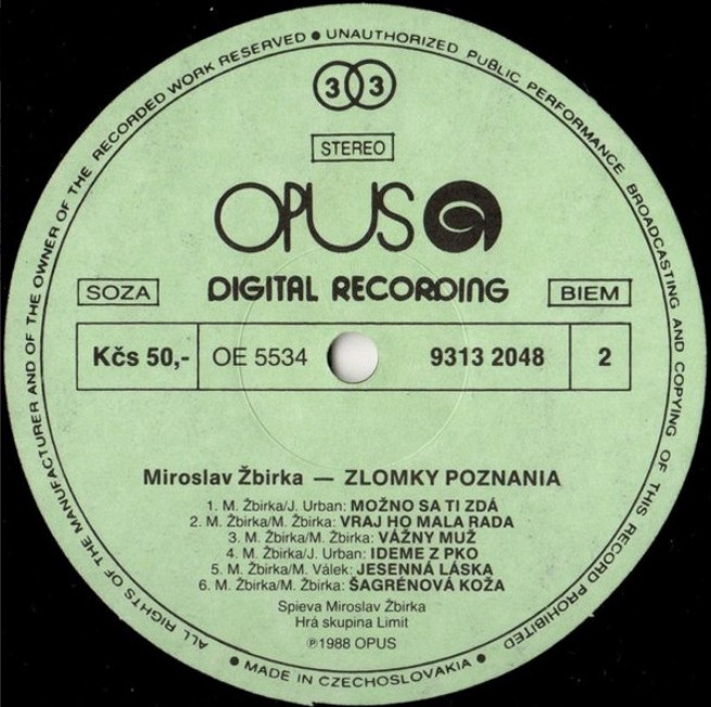 ► Zlomky Poznania - Шестой студийный альбом чехословацкого композитора и исполнителя собственных песен Мирослава Жбирки, вышедшего на лейбле OPUS в 1988 году.