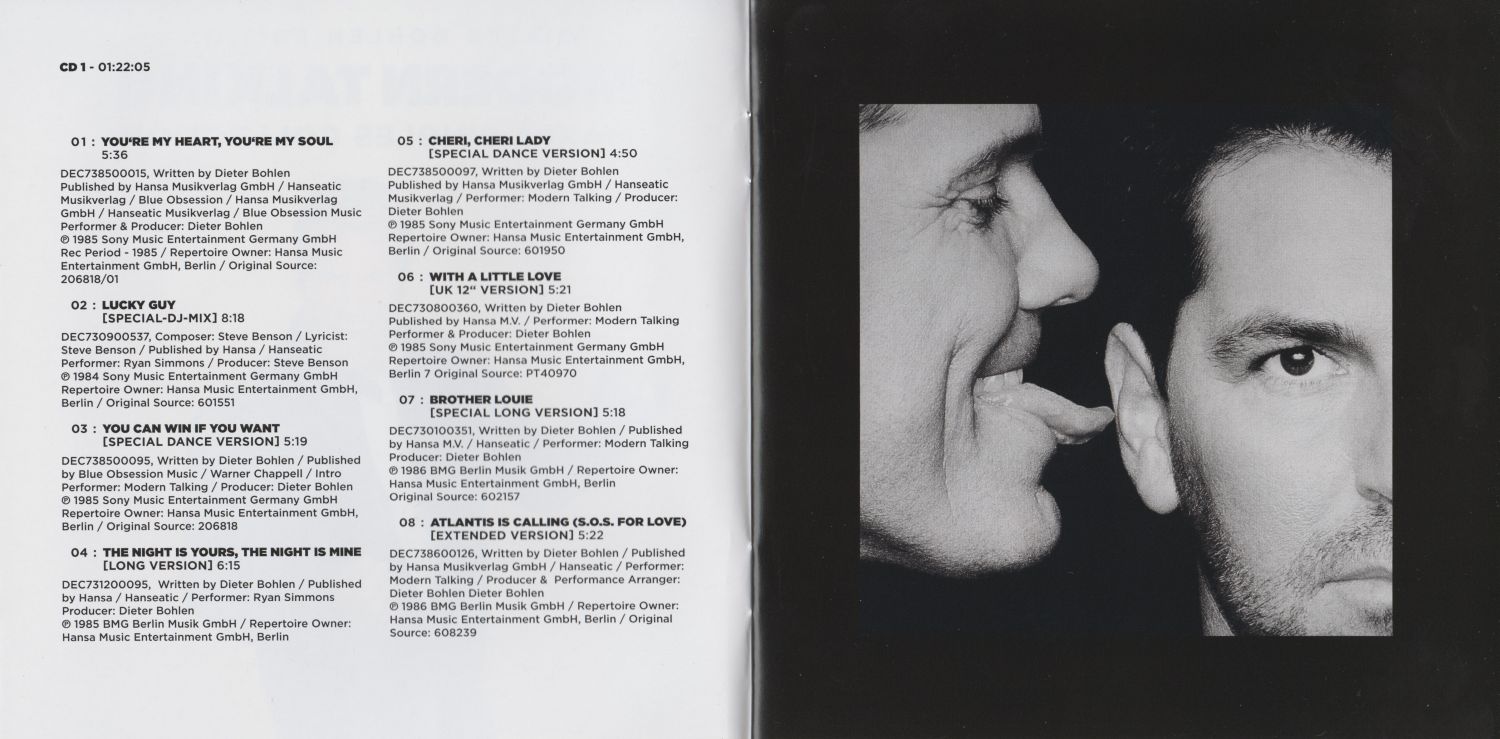 Существовало и продолжает существовать множество компиляций Modern Talking, но здесь Sony Music в сотрудничестве с поклонниками и коллекционерами из Германии и других стран собрала мощный бокс из 3CD. Не менее 15 версий никогда ранее не выходили на официальных CD Modern Talking, а некоторые из них - только на виниле или в виде синглов за рубежом. Это музыкальное путешествие в мир открытий на 7- и 12-дюймовых пластинках.