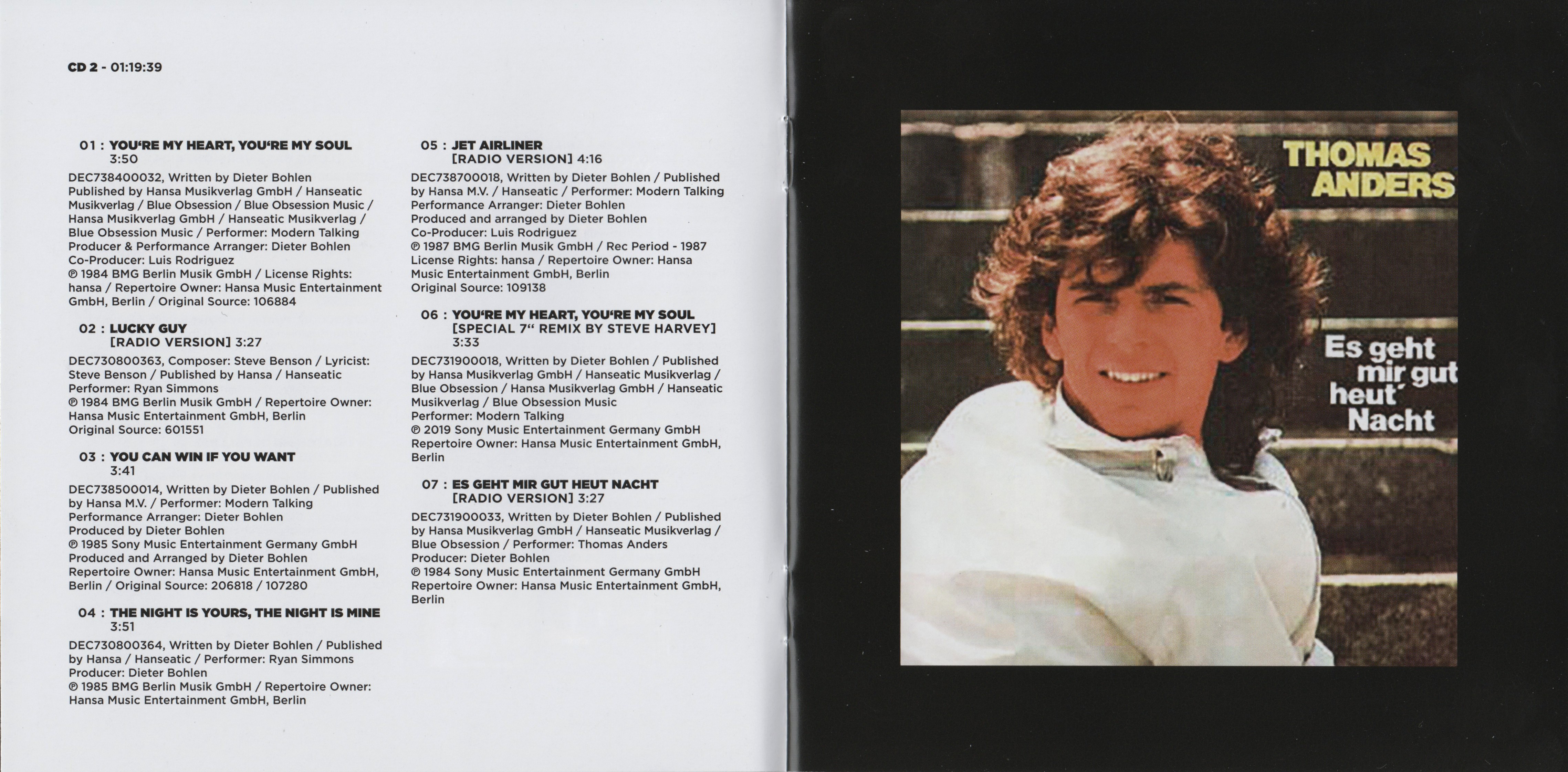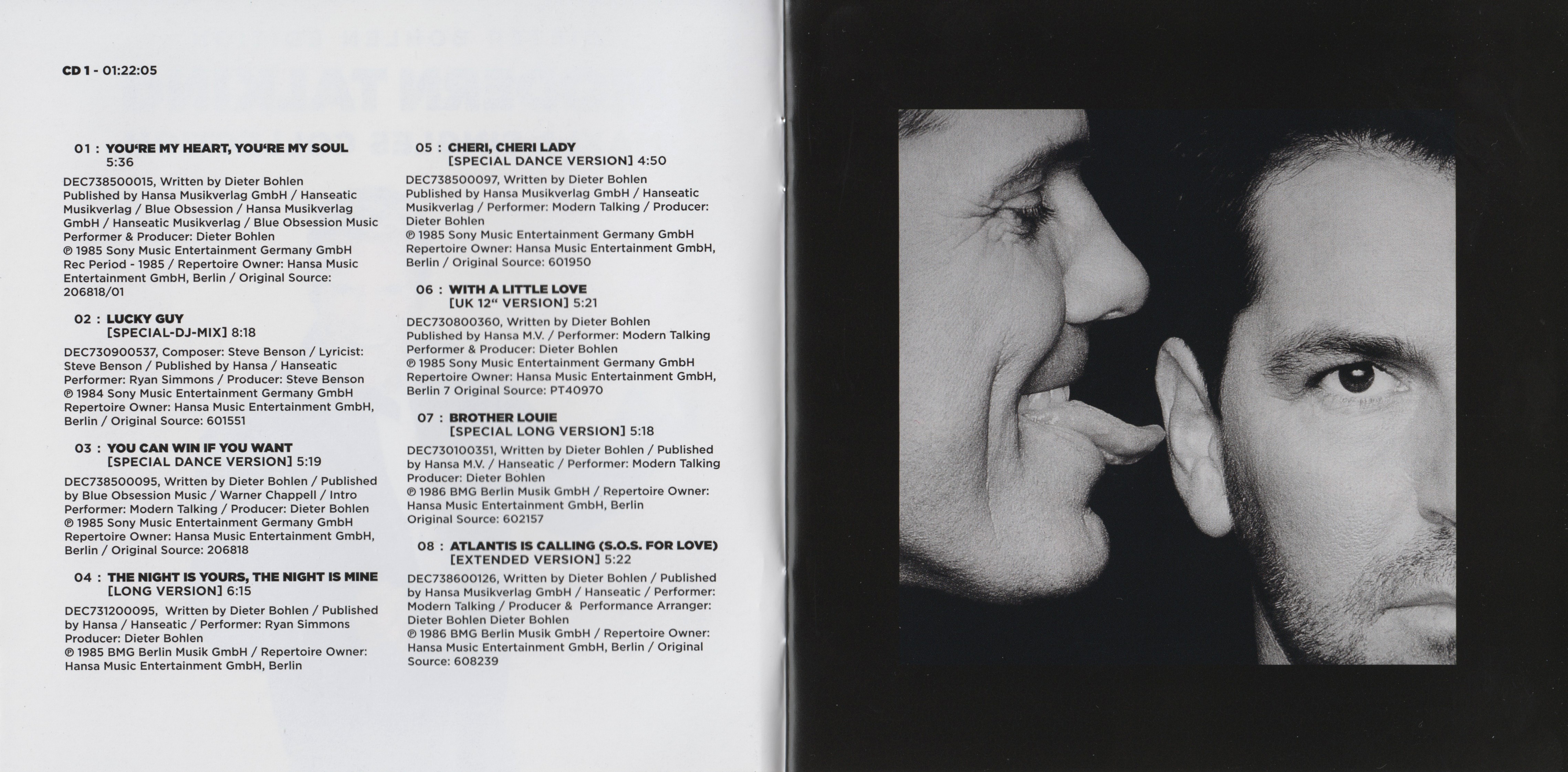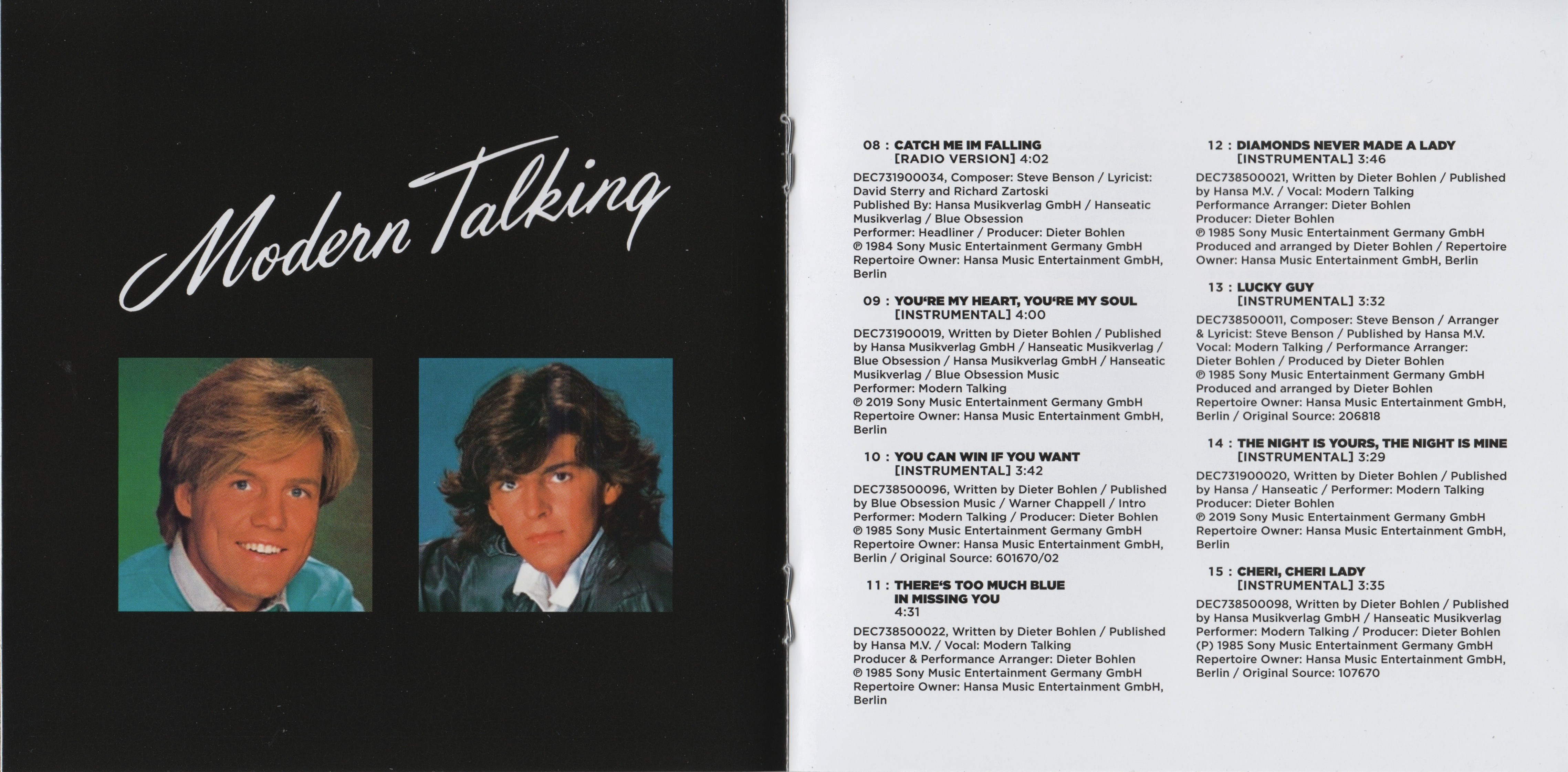 Буклет содержит оригинальные обложки макси-винила, а также великолепные фотографии Дитера и Томаса из старых добрых времён Modern Talking с 1984 по 2003г. Конечно же, есть и актуальный фотоколлаж тура Дитера Болена 2019 года.