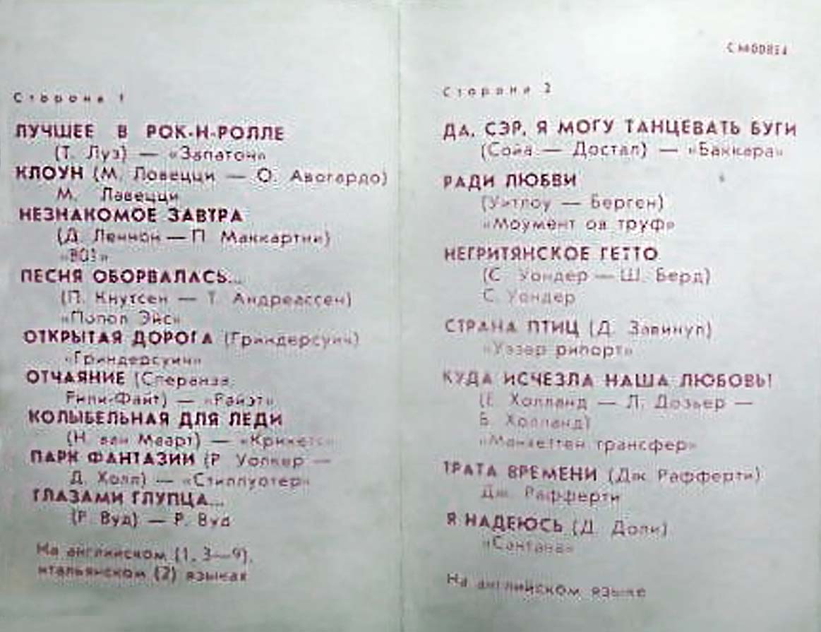 Сразу подчеркну, что дата релиза указана 1979-1981, т.к. кассеты выпускались на разных заводах в течение этого периода времени. Самих кассет у меня нет, поэтому восстанавливал по названиям. Если обнаружатся ошибки, то прошу не сильно ругать, но комментировать – исправлю, добавлю. В ряде сборников есть несколько песен, которые в инете найти не удалось – прошу помочь с поиском.