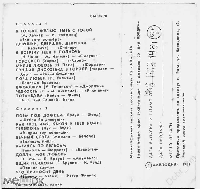 Лейбл: Мелодия – СМ00720