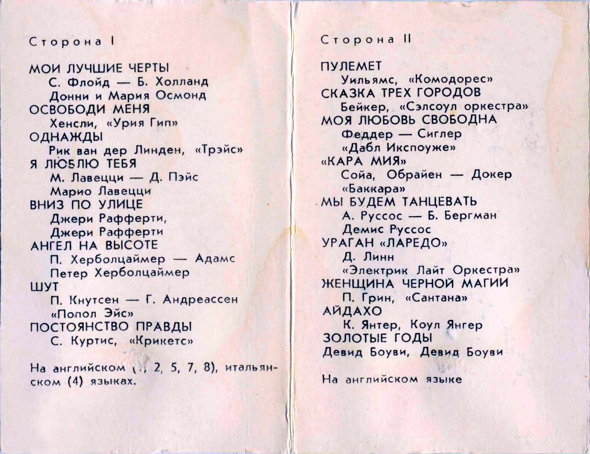 Сразу подчеркну, что дата релиза указана 1979-1981, т.к. кассеты выпускались на разных заводах в течение этого периода времени. Самих кассет у меня нет, поэтому восстанавливал по названиям. Если обнаружатся ошибки, то прошу не сильно ругать, но комментировать – исправлю, добавлю. В ряде сборников есть несколько песен, которые в инете найти не удалось – прошу помочь с поиском.