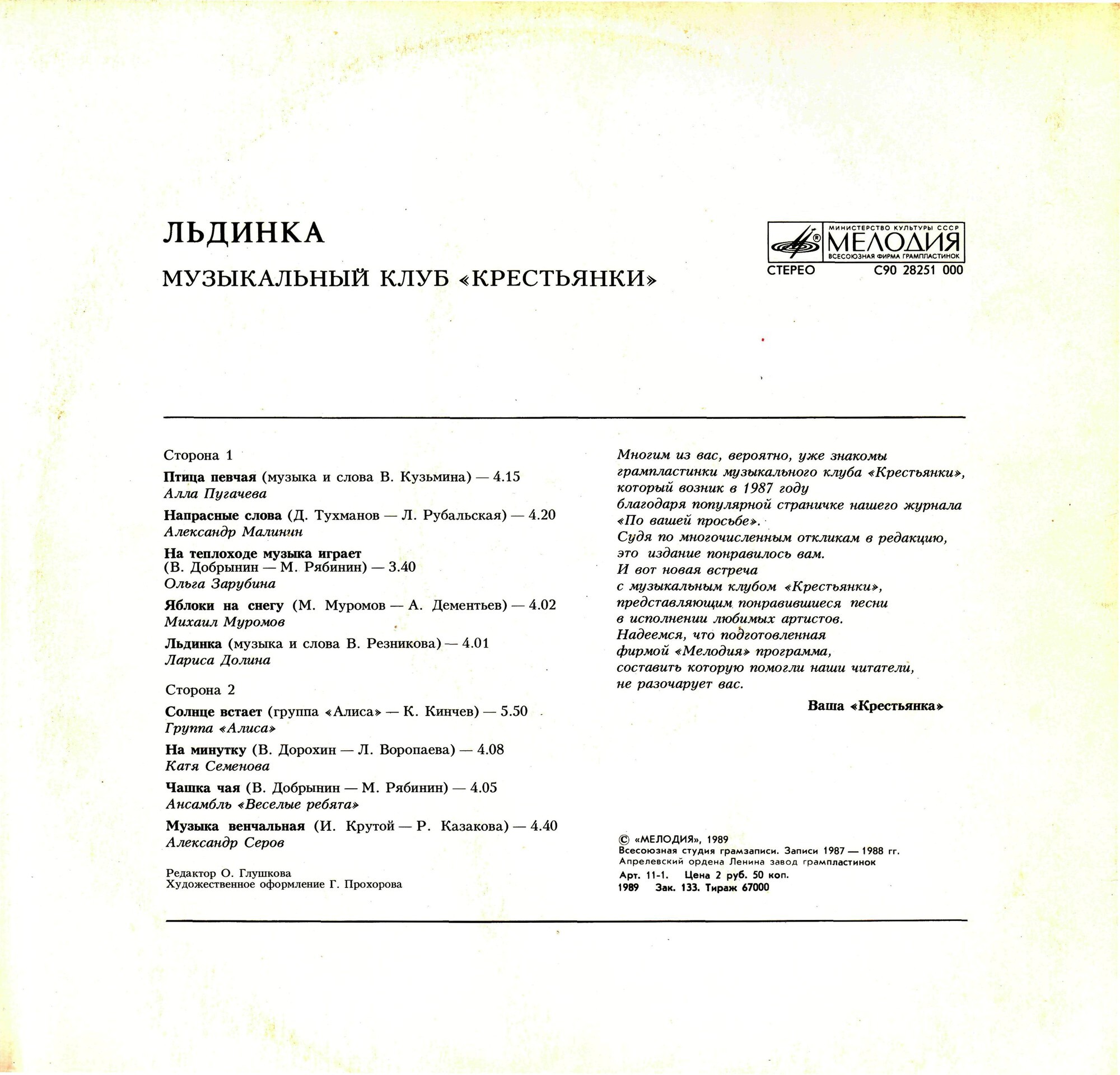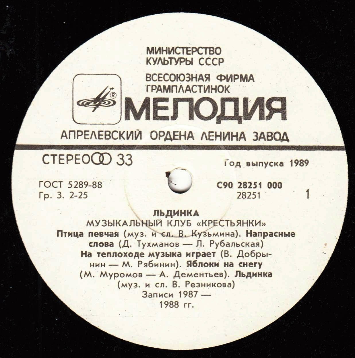 Музыкальный Клуб «Крестьянки» ~ (1989) VA - Льдинка (Пластинка 5)